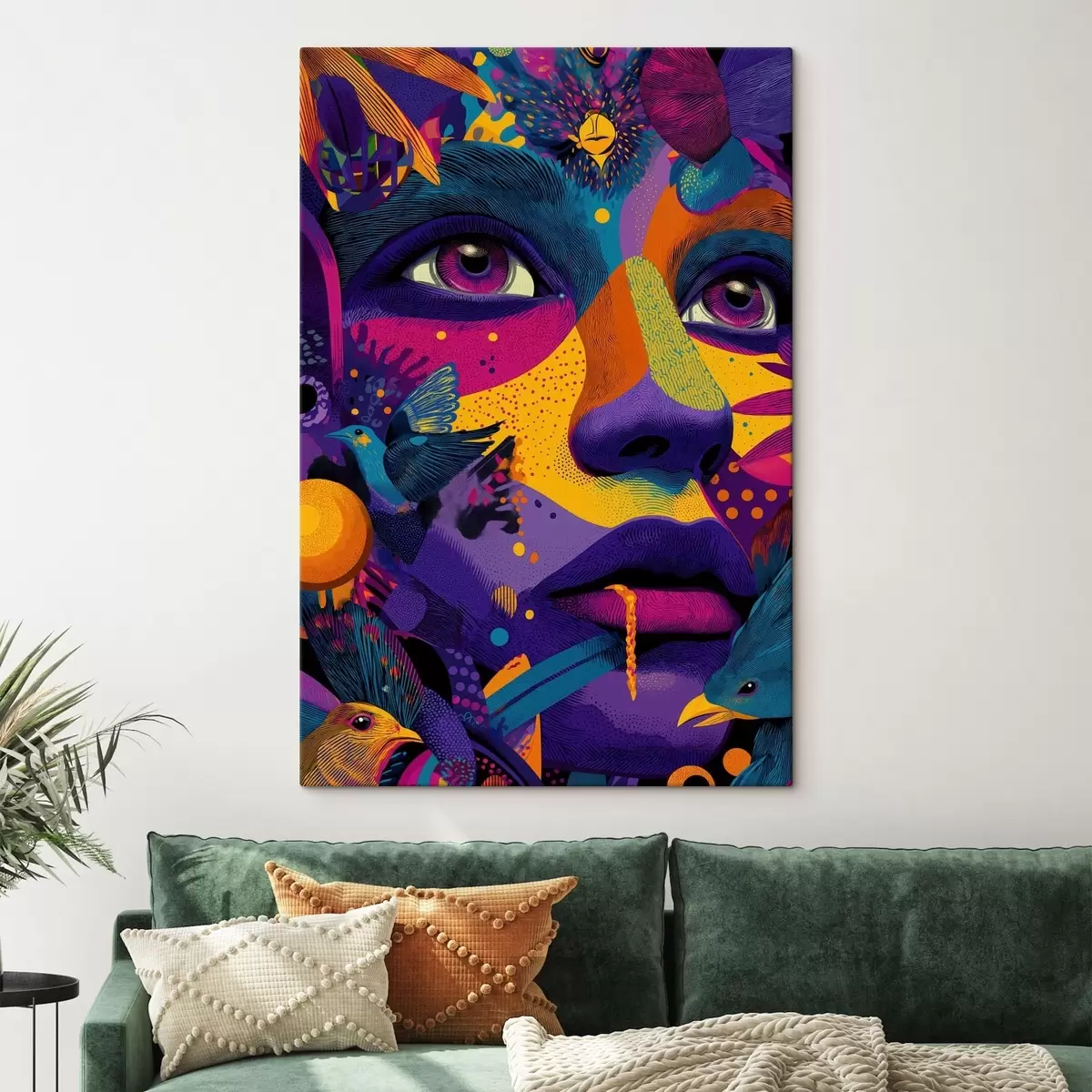 Schilderij Psychedelisch portret met vogels Art. s47790