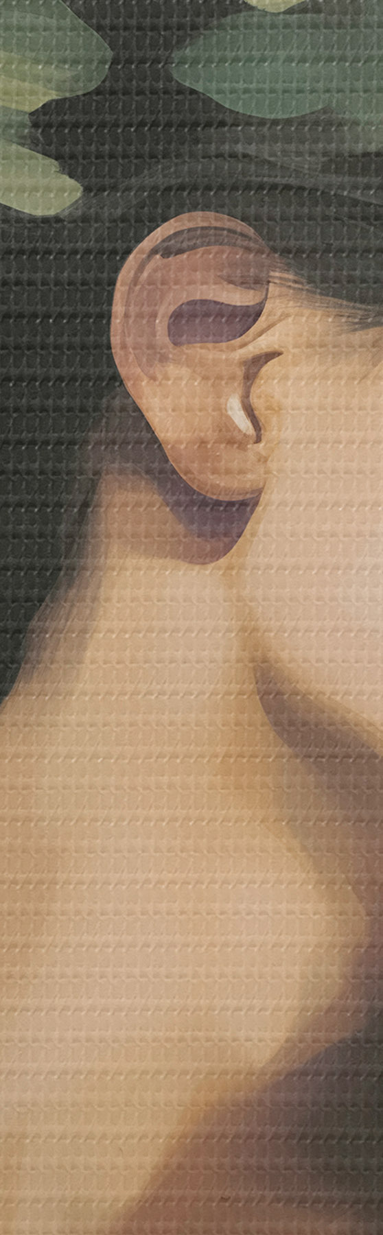 Om het doek op te spannen op spielatten zonder de afbeelding te beschadigen, gebruiken we gespiegeld beeld.