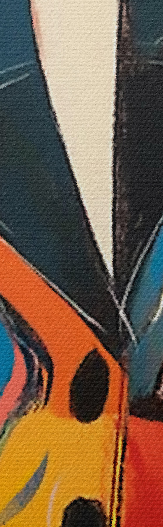 Het schilderij kan direct na ontvangst worden opgehangen. Het schilderij wordt opgespannen op een 2 cm breed houten spieraam.