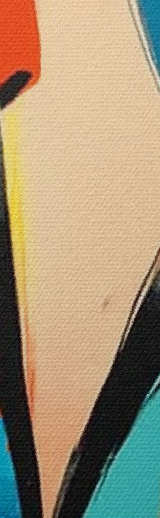 Het schilderij kan direct na ontvangst worden opgehangen. Het schilderij wordt opgespannen op een 2 cm breed houten spieraam.
