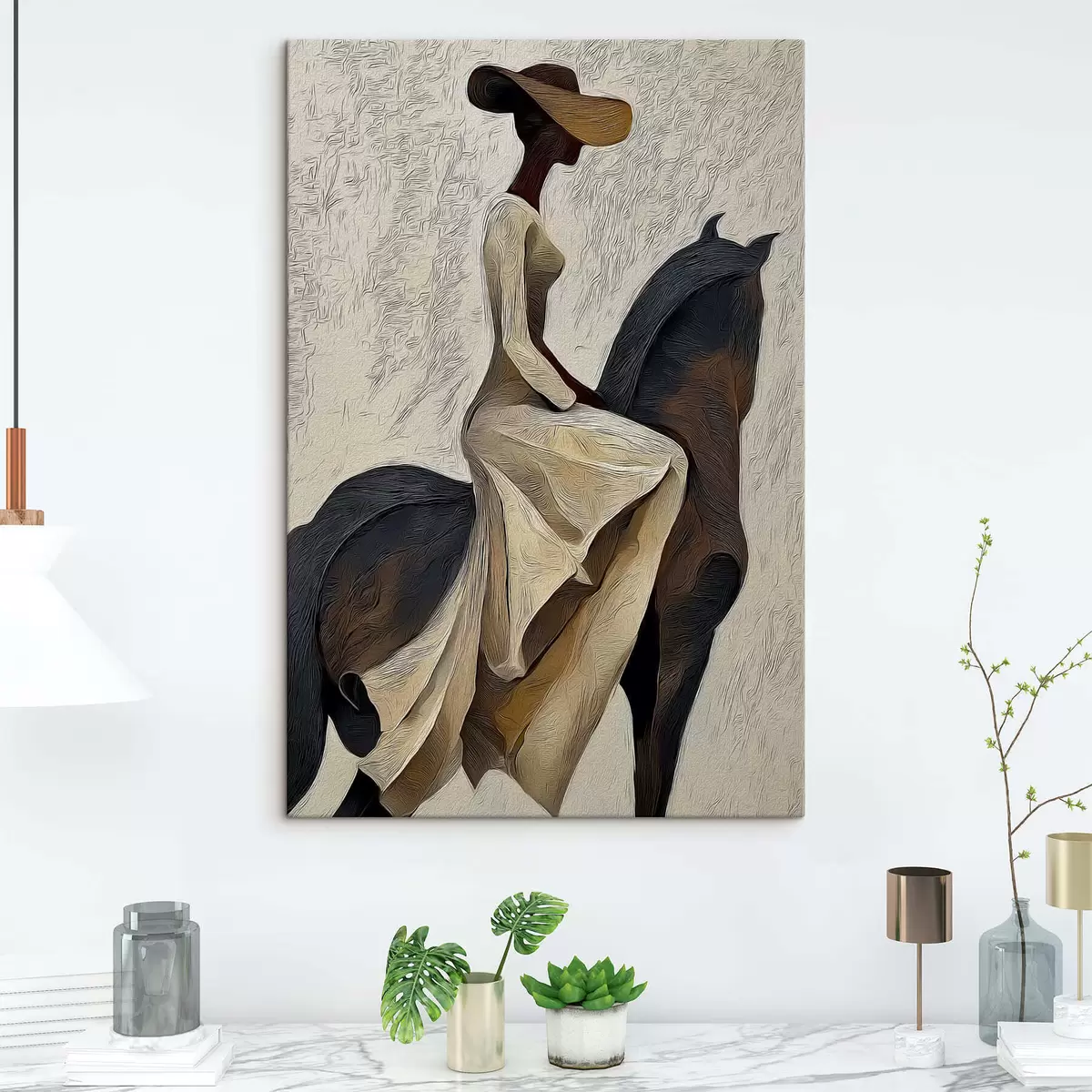 Het schilderij kan direct na ontvangst worden opgehangen. Het schilderij wordt opgespannen op een 2 cm breed houten spieraam.