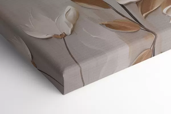 Schilderijen Abstracte witte bloemen met gestructureerde bloemblaadjes, tegen een neutrale achtergrond met subtiele penseelstreken. imitatie s47873