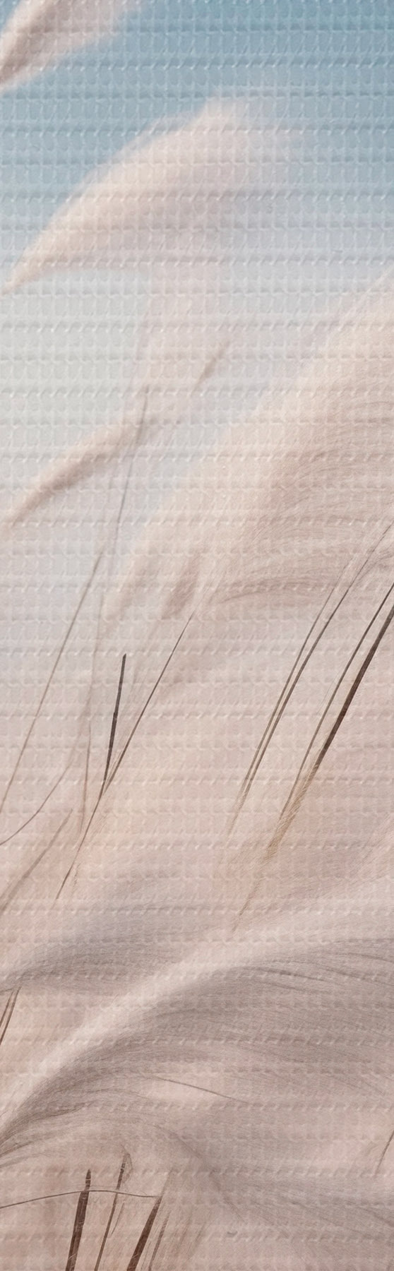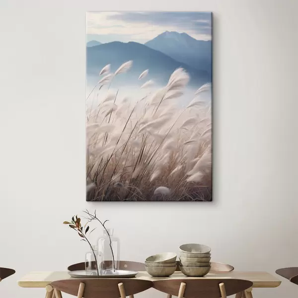 Schilderij Hoog, wit pampagras dat in de wind wappert met zachte blauwe bergen op de achtergrond Art. s47879