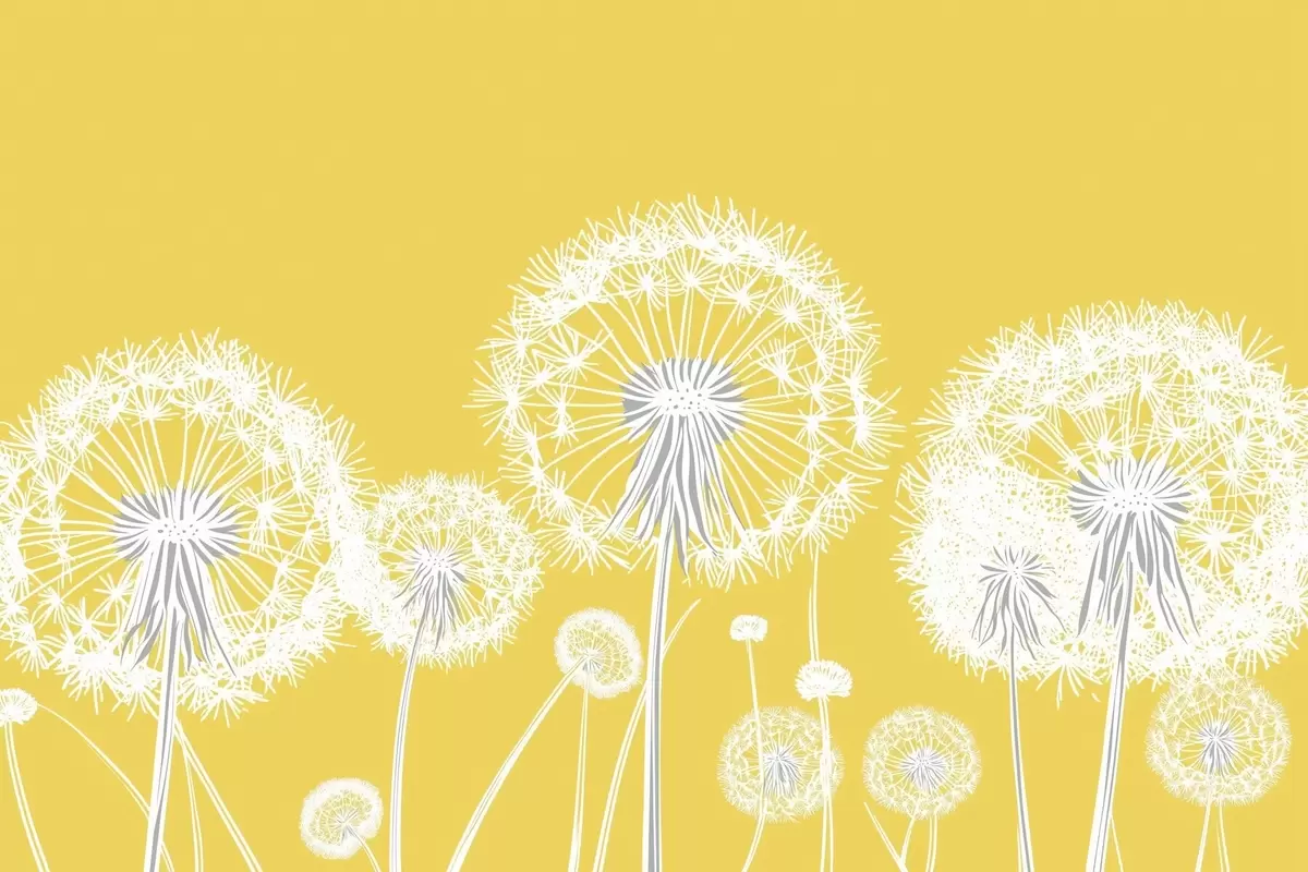 Schilderij Witte paardenbloemen op een gele achtergrond Art. s47890