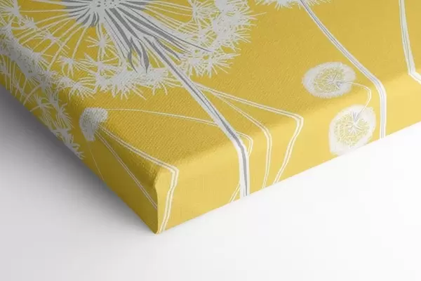 Schilderijen Witte paardenbloemen op een gele achtergrond s47890