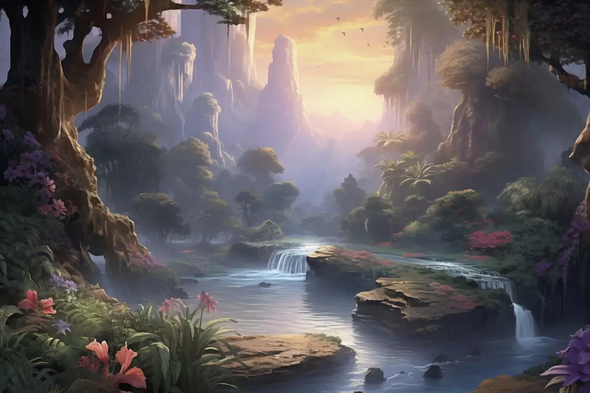 Schilderij Watervallen in een sprookjesachtig bos Art. s47893