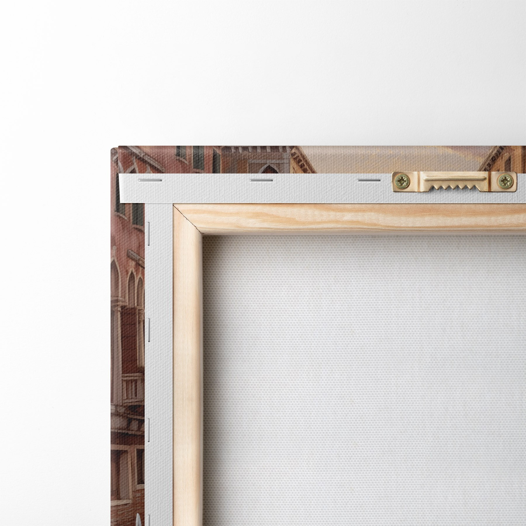 Om het doek op te spannen op spielatten zonder de afbeelding te beschadigen, gebruiken we gespiegeld beeld.