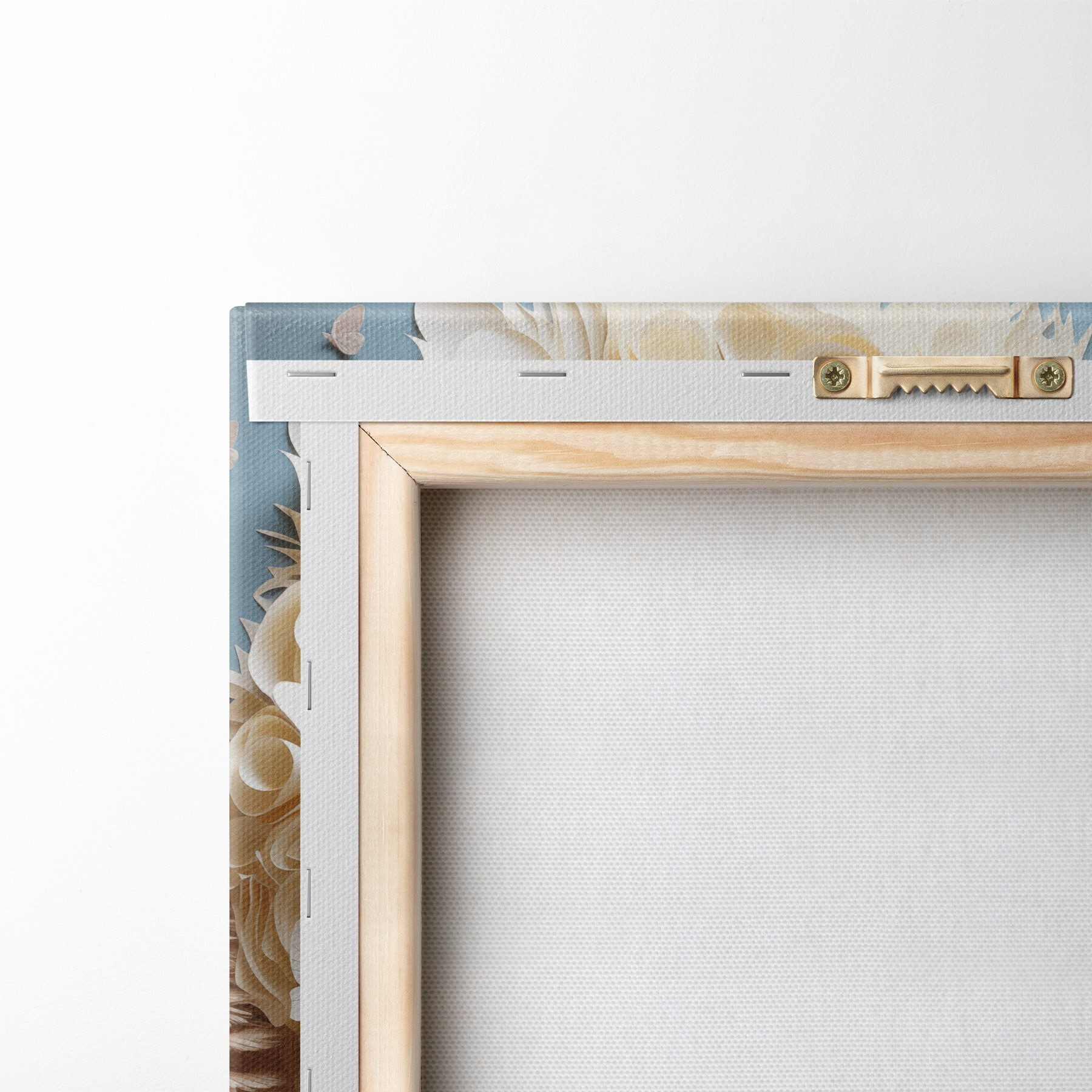 Om het doek op te spannen op spielatten zonder de afbeelding te beschadigen, gebruiken we gespiegeld beeld.