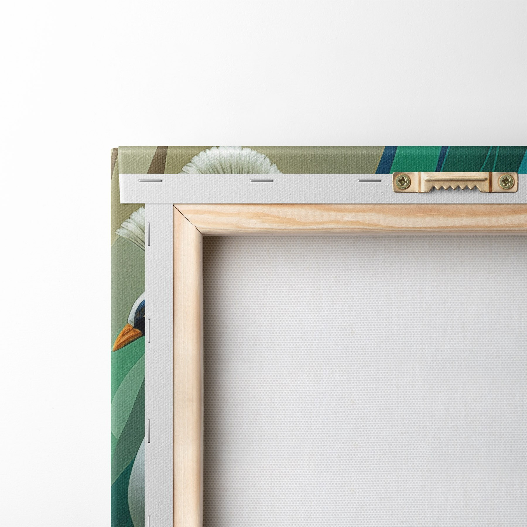 Om het doek op te spannen op spielatten zonder de afbeelding te beschadigen, gebruiken we gespiegeld beeld.