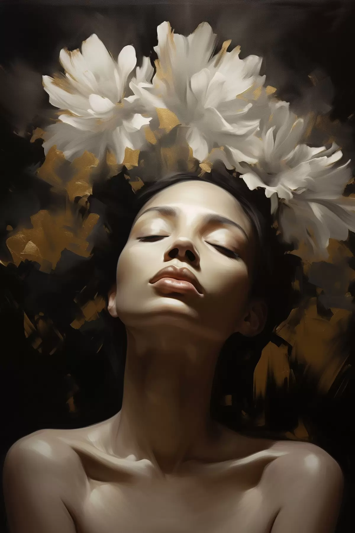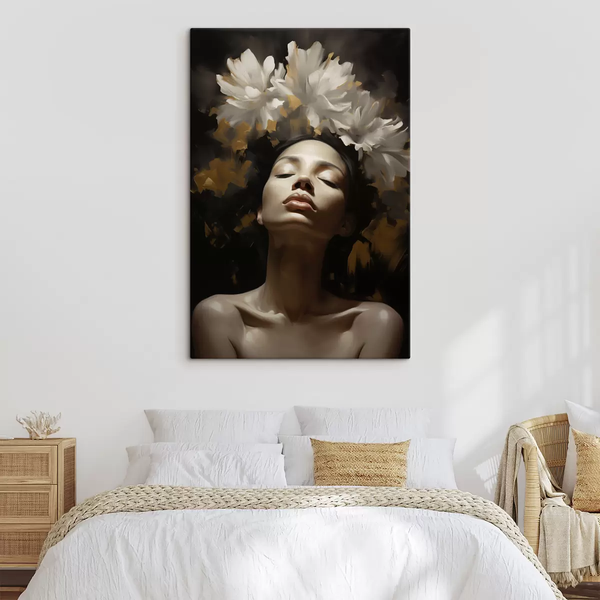 Schilderijen Vrouwenportret met witte bloemen s47918