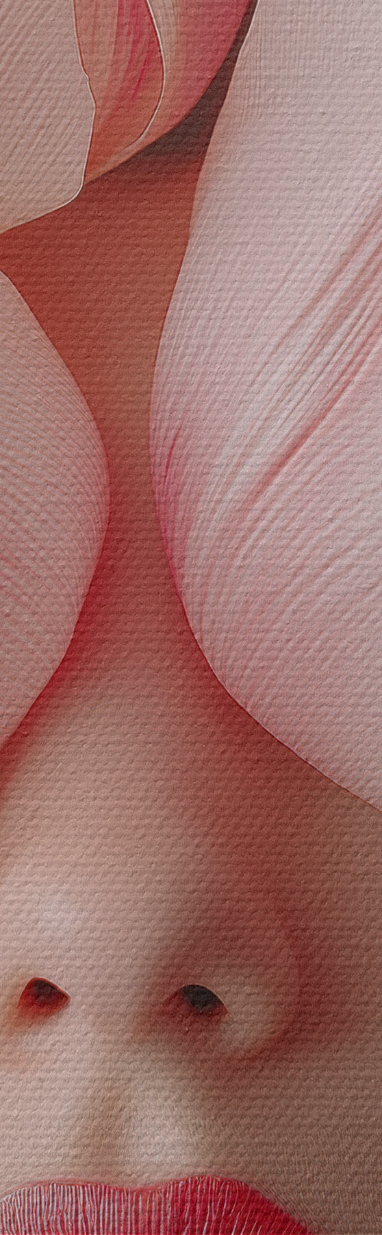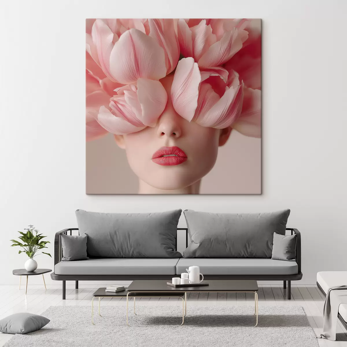 Schilderijen Vrouwelijk portret met roze bloemblaadjes s47920