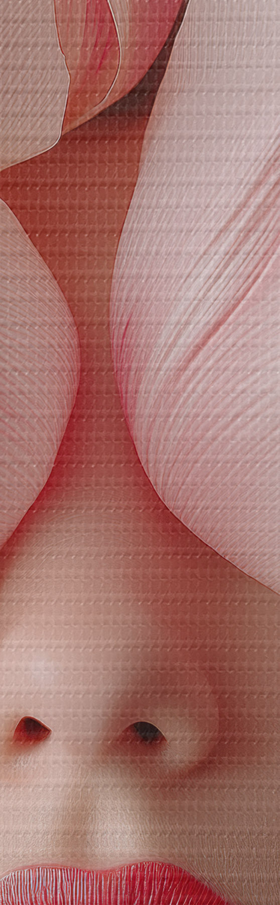 Schilderij Vrouwelijk portret met roze bloemblaadjes Art. s47920