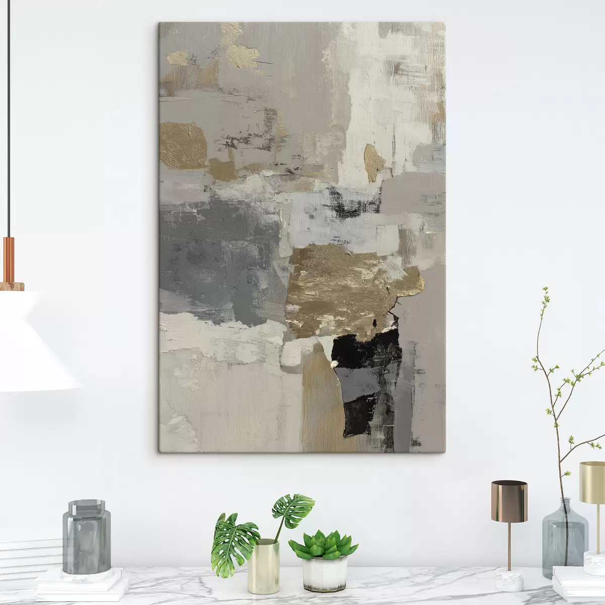 Je kunt het schilderij ophangen aan schroeven. Hiervoor leveren we bevestigingen bij onze foto's, zodat je de foto gemakkelijk kunt ophangen.