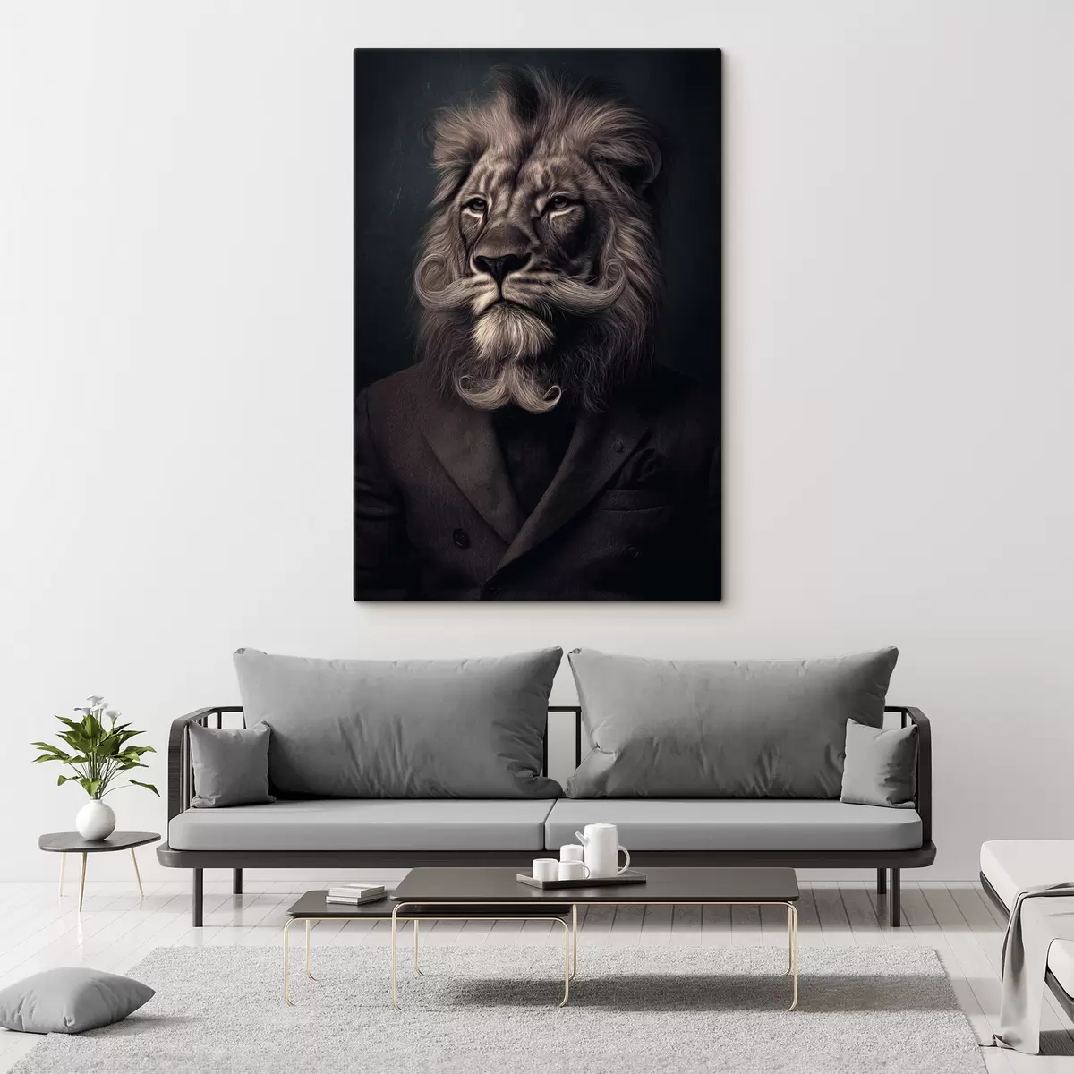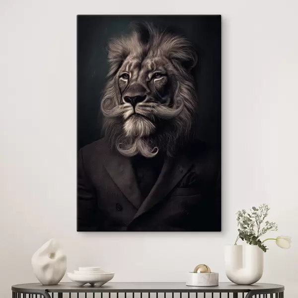 Schilderij leeuw met een baard in kappersstijl Art. s47947