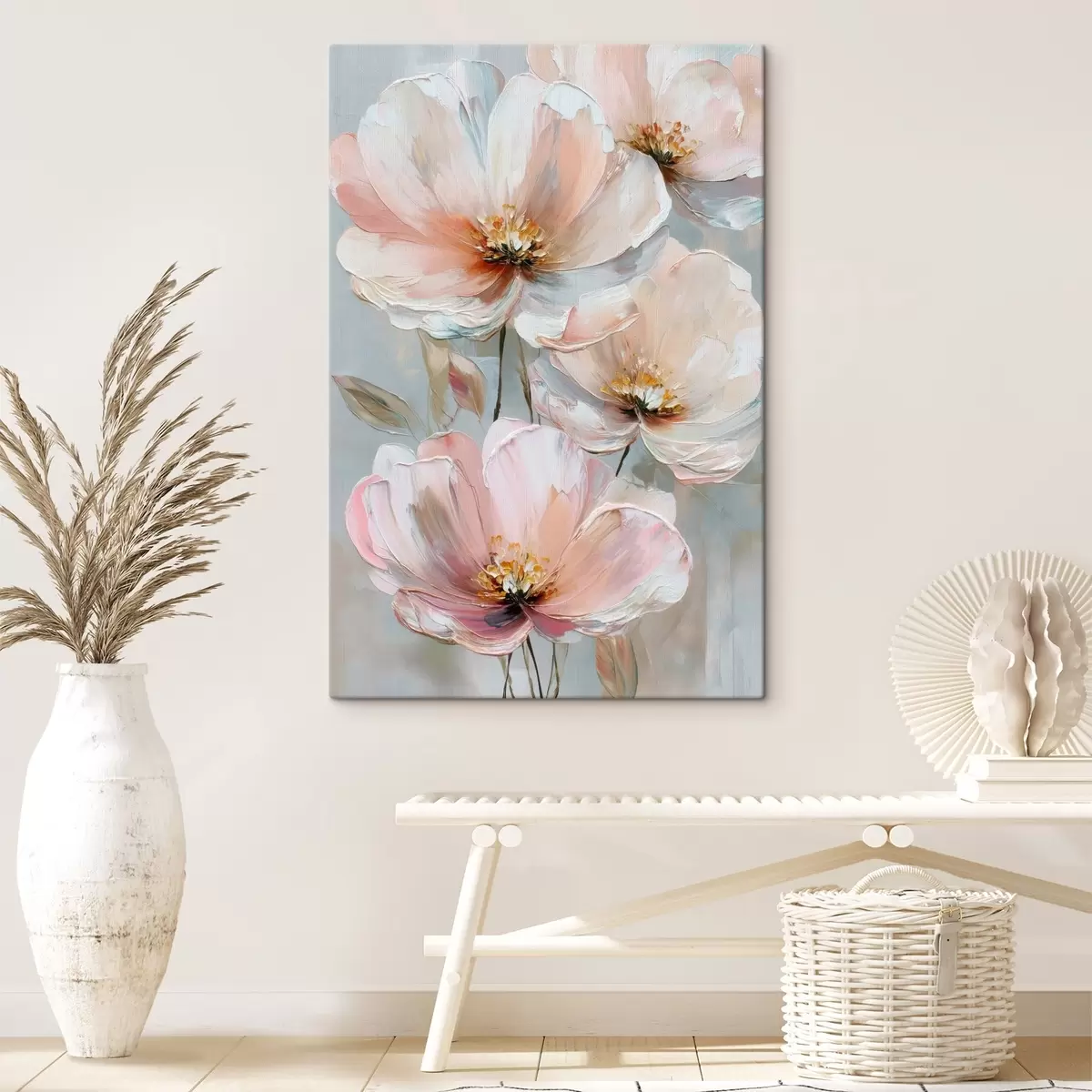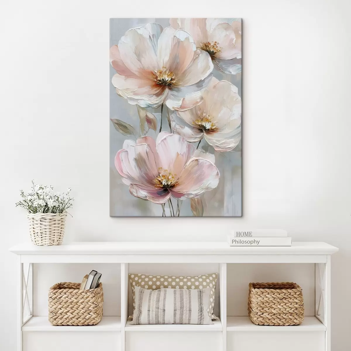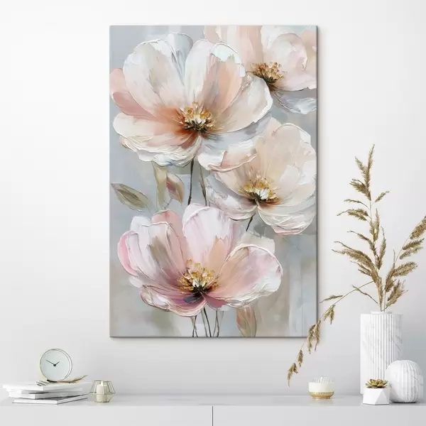 Schilderij Witroze bloemen met expressieve penseelstreken in een olieverfstijl Art. s47962