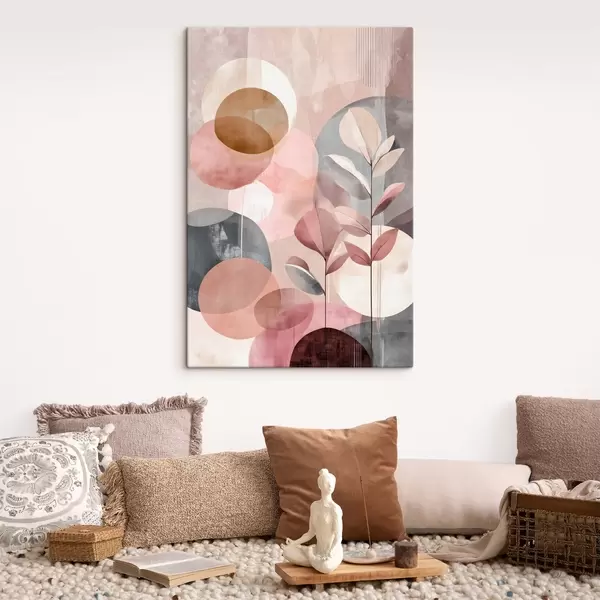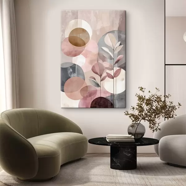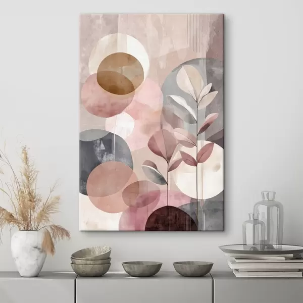 Schilderij Abstracte compositie met cirkels in een terracotta-roze kleurenpalet Art. s47977