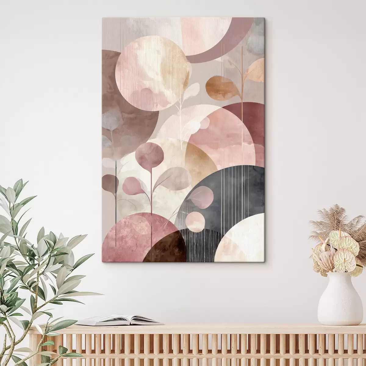 Schilderij Samenstelling van doorschijnende cirkels en gestileerde takken Art. s47978