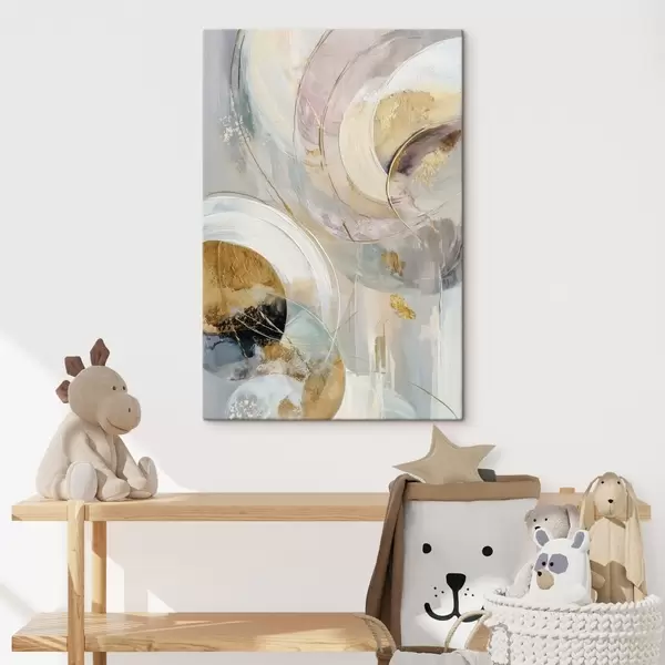 Schilderij Compositie met gelaagde cirkelvormige elementen en verfstreken Art. s47983