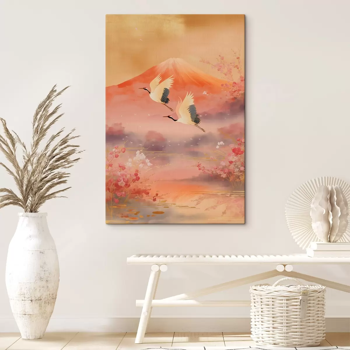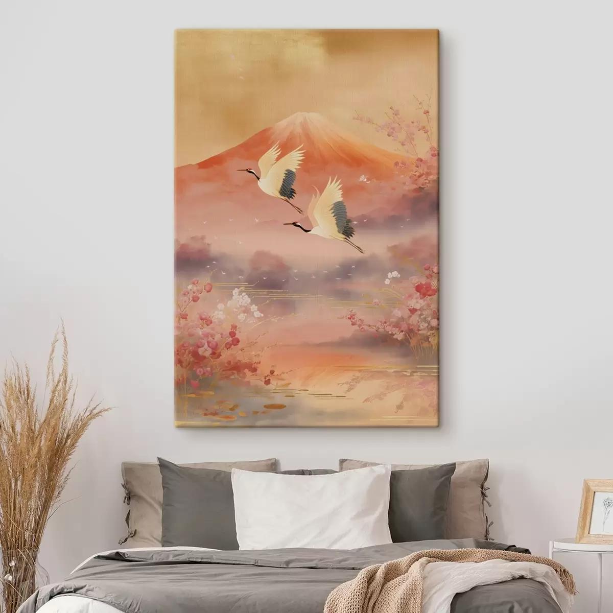 Schilderij Traditioneel oosters motief met kersenbloesems en kraanvogels Art. s47991