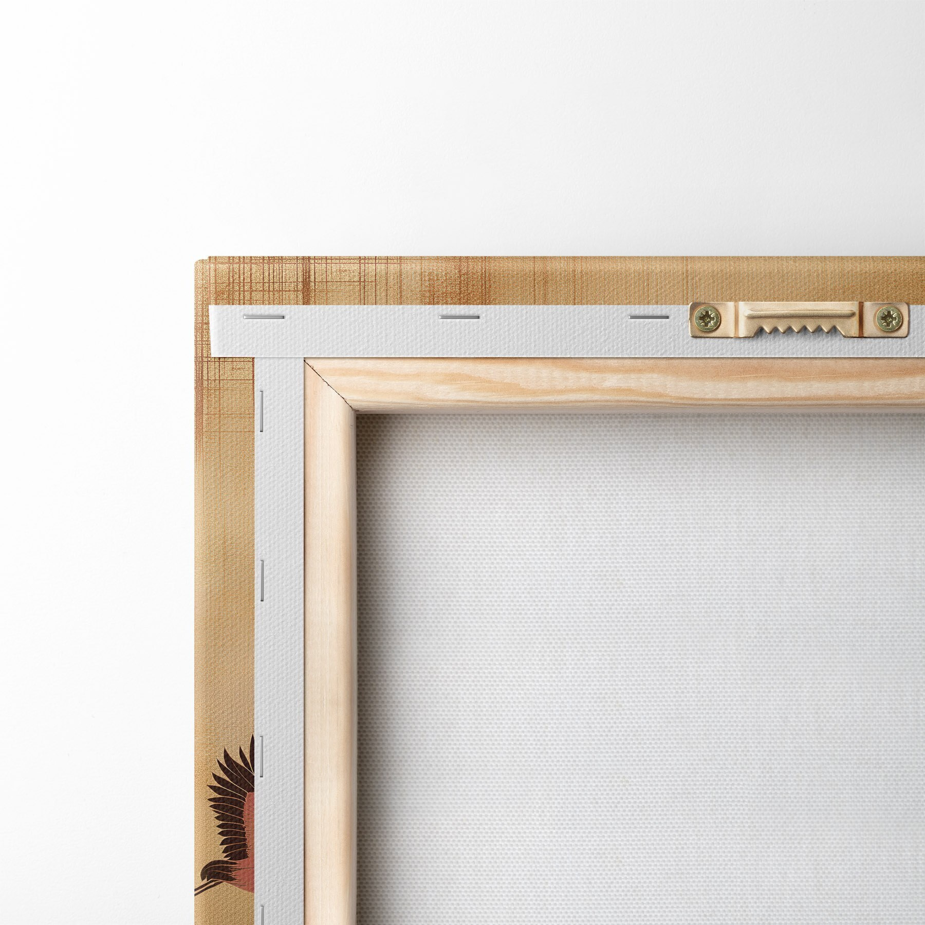 Om het doek op te spannen op spielatten zonder de afbeelding te beschadigen, gebruiken we gespiegeld beeld.