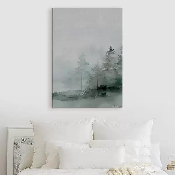 Schilderijen Dennenbomen in het bos, imitatie aquarel s47998