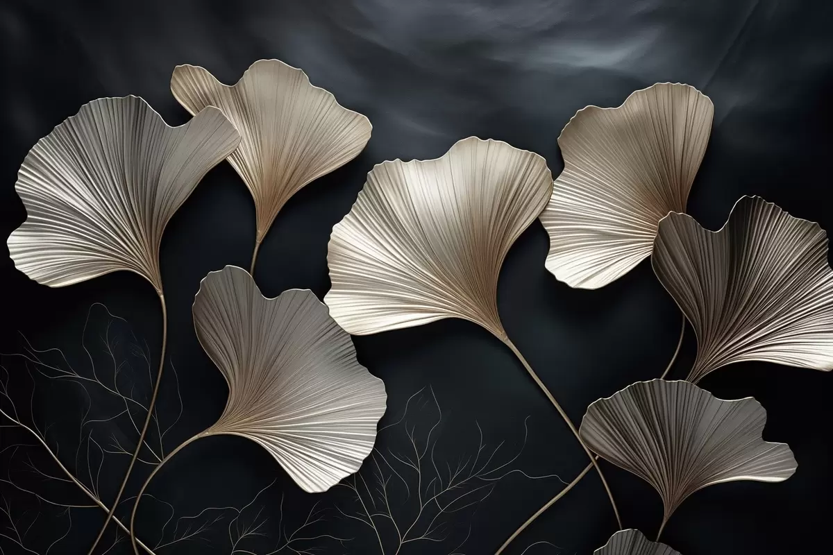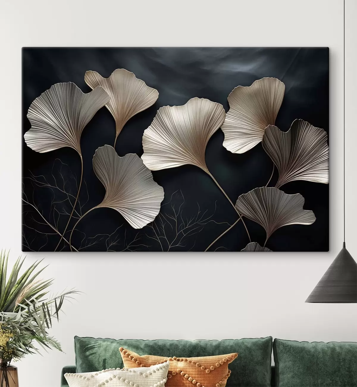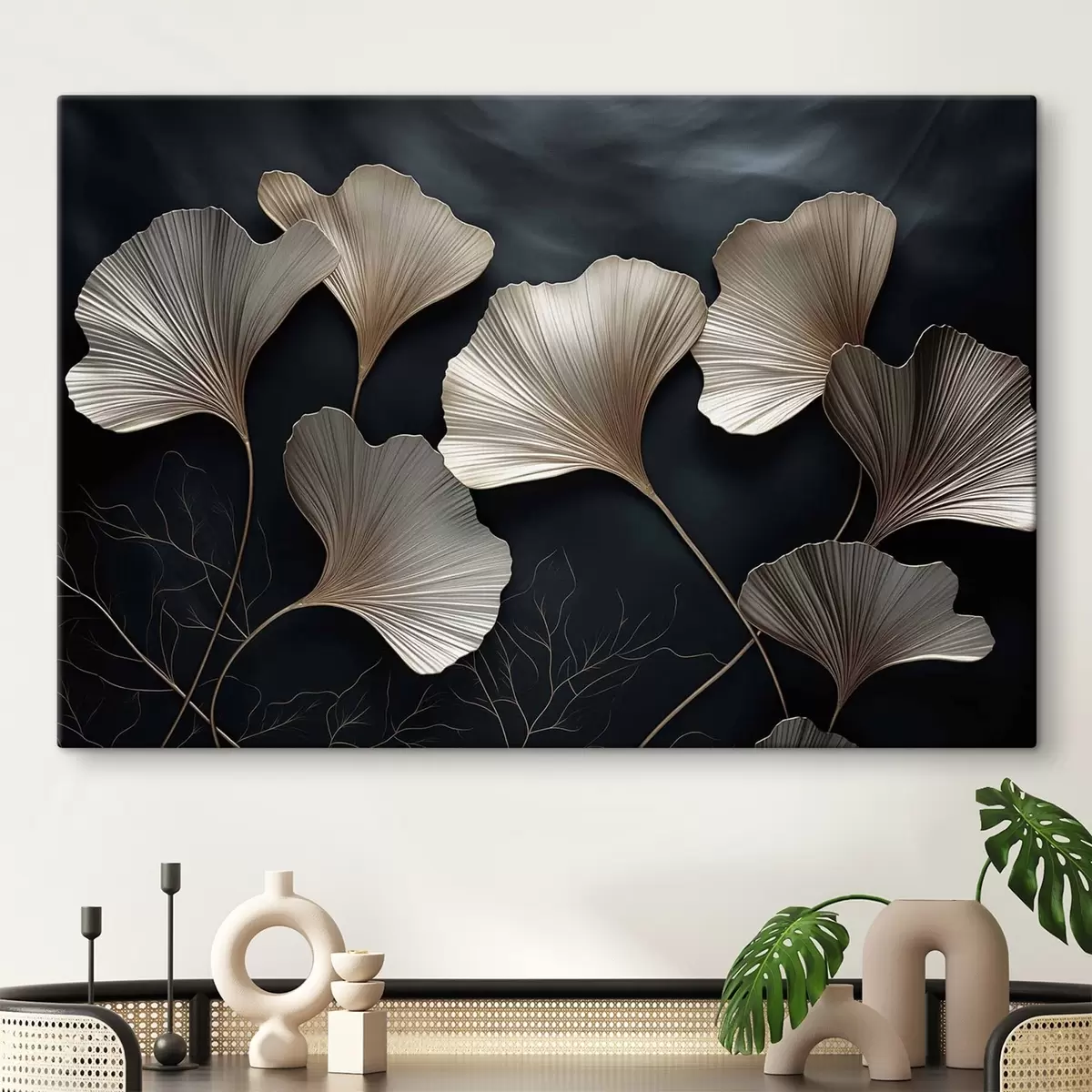 Schilderij Ginkgobladeren op een donkere achtergrond Art. s48008