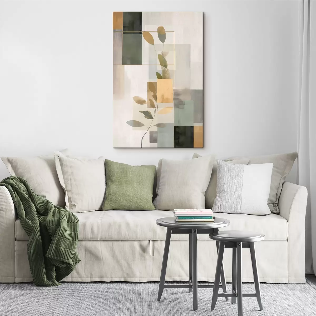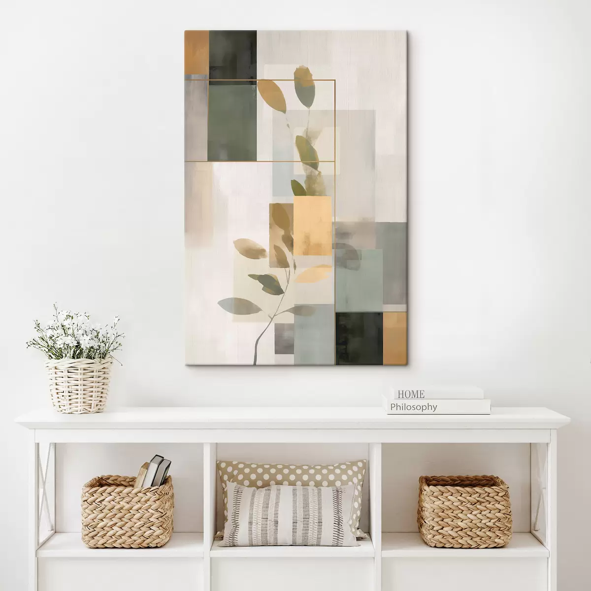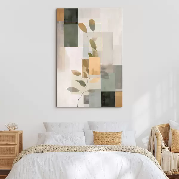 Schilderij Geometrische abstractie met takken en bladeren Art. s48020