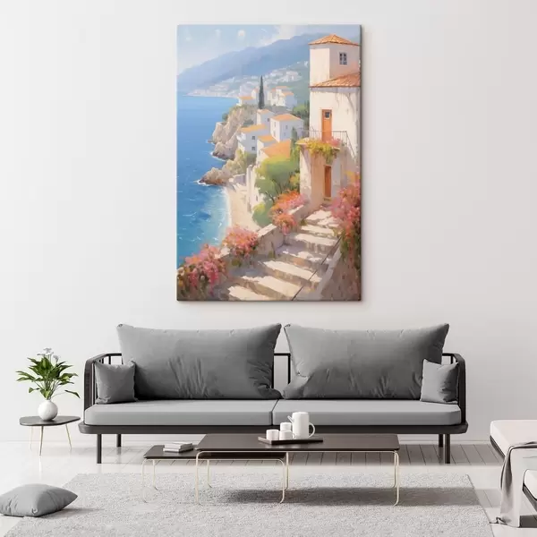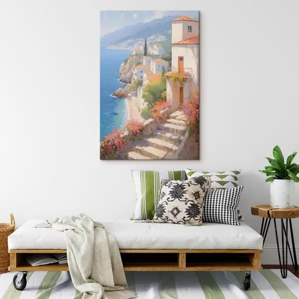 Schilderij impressionistisch dorpje aan een mediterrane klif Art. s48060