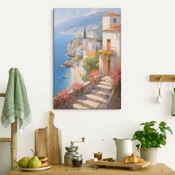 Schilderij impressionistisch dorpje aan een mediterrane klif Art. s48060