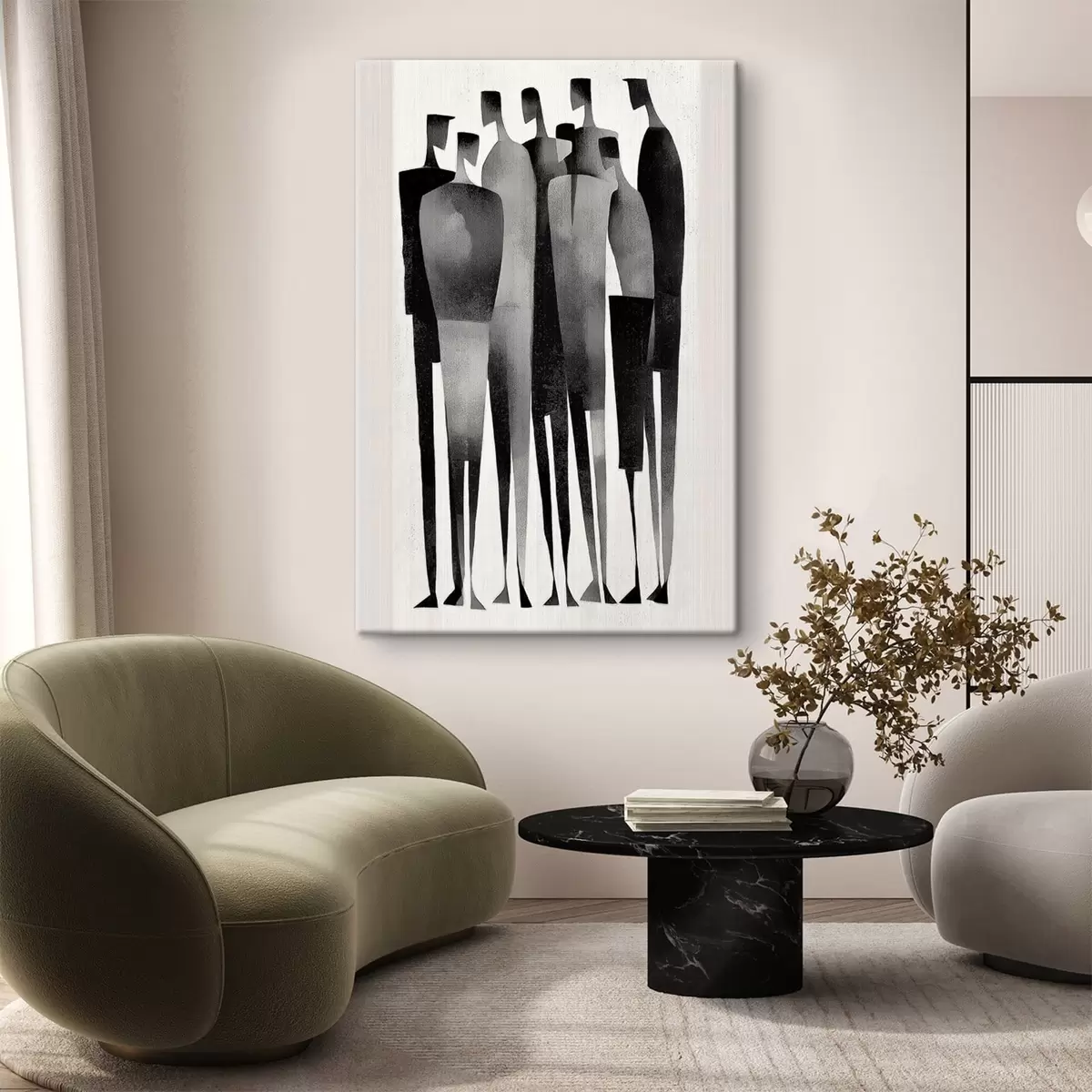 Schilderij minimalistische langgerekte menselijke figuren die in een rij staan Art. s48069