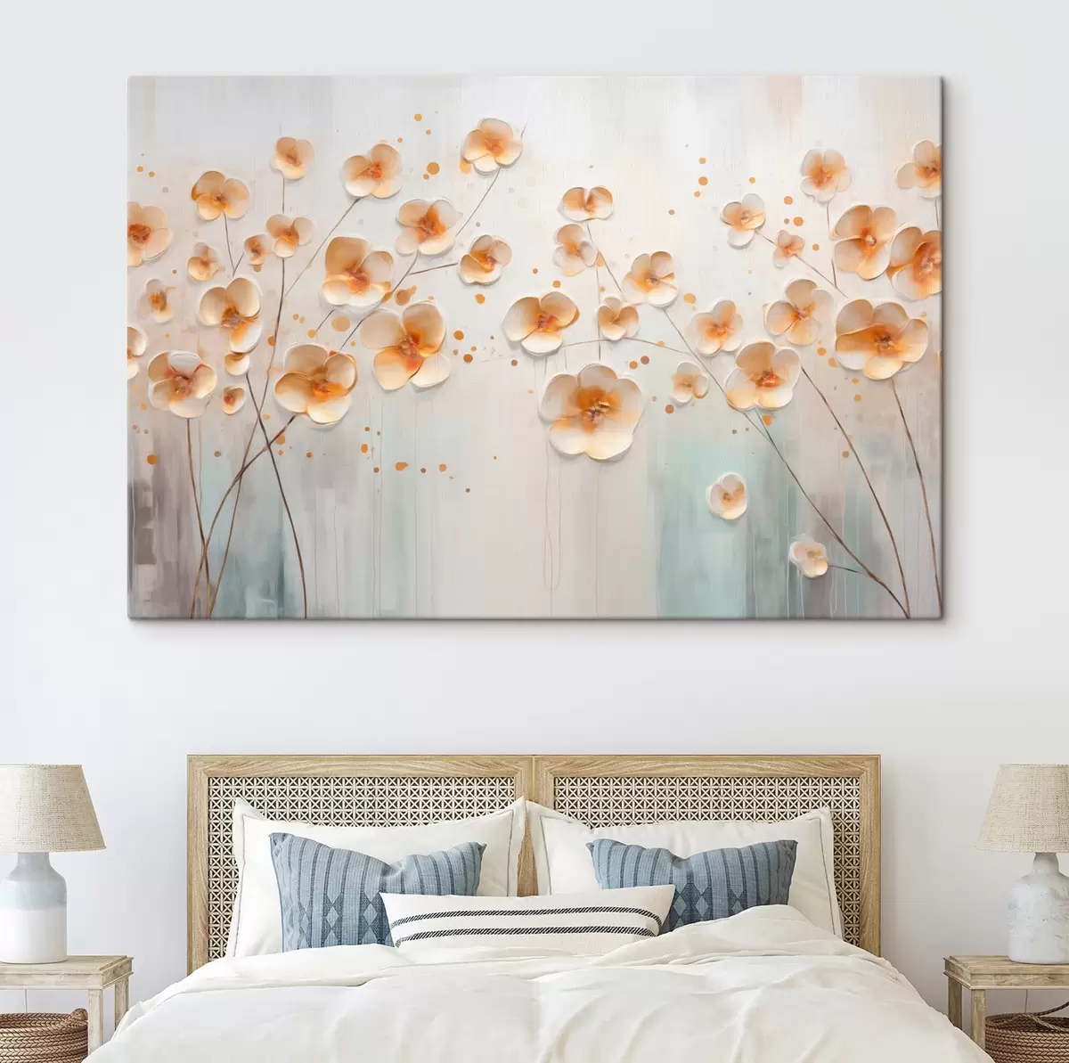Schilderij Lichte bloemen met oranje accenten Art. s48087