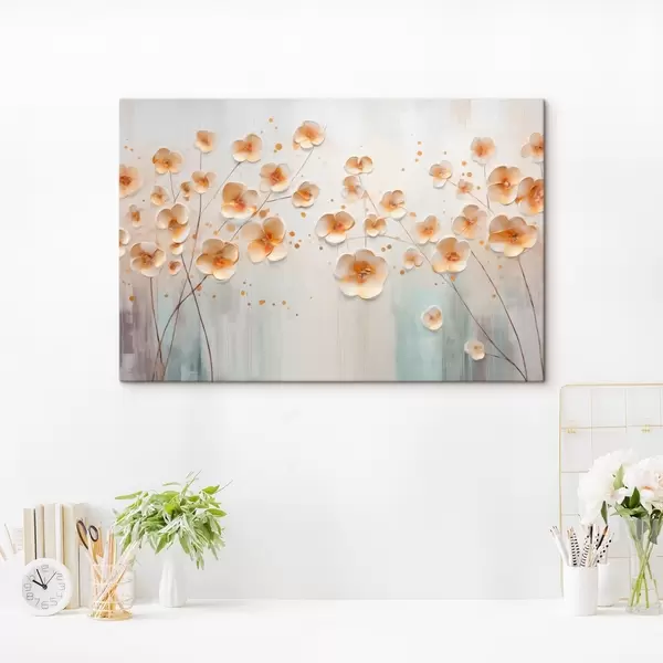 Schilderijen Lichte bloemen met oranje accenten s48087