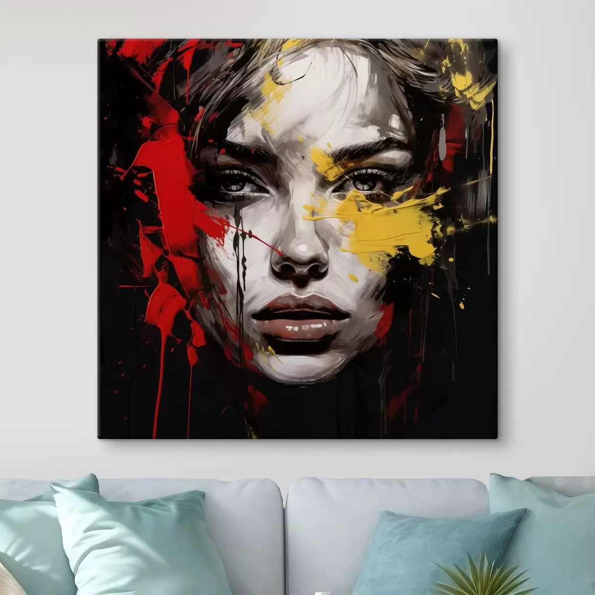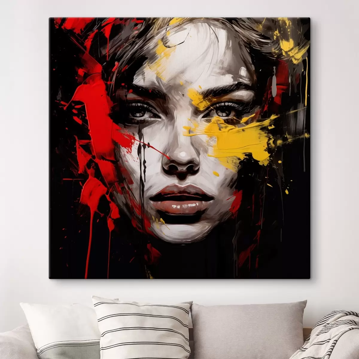 Schilderijen Vrouwenportret met rode en gele streken s48089