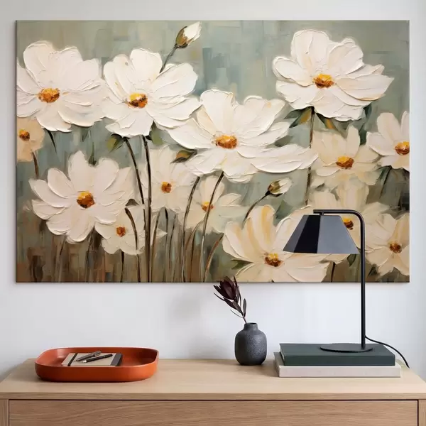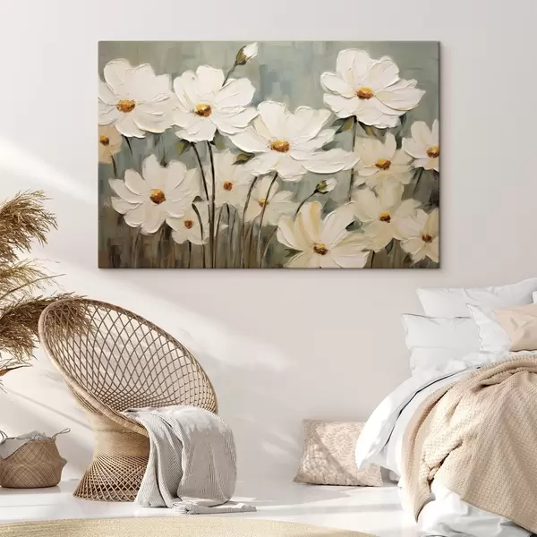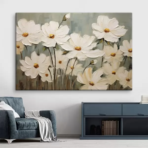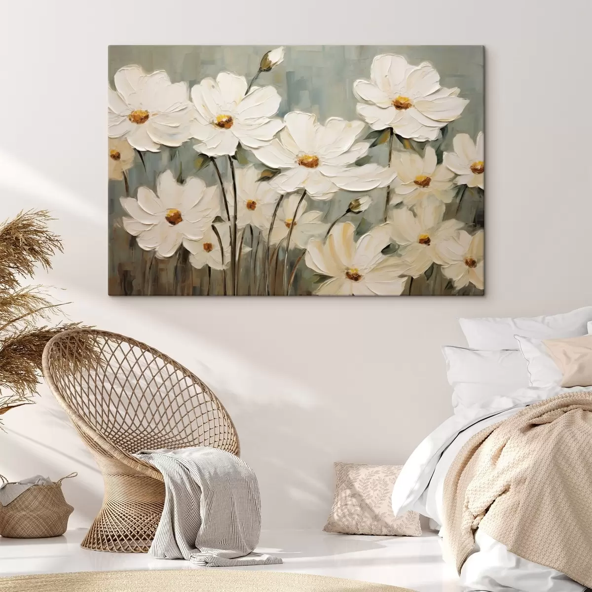 Schilderij Witte bloemen op gestructureerde achtergrond, penseelstreken Art. s48094