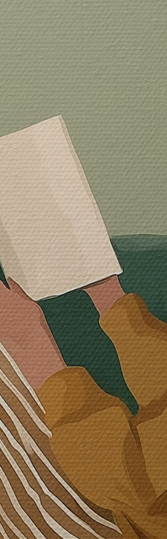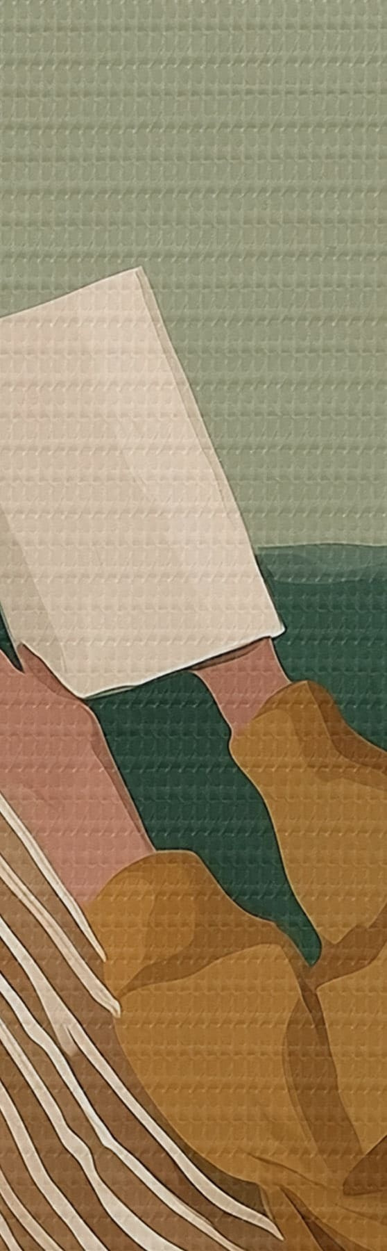 Schilderij Minimalistische, gezellige illustratie van een vrouw die in een fauteuil zit te lezen. Art. s48118