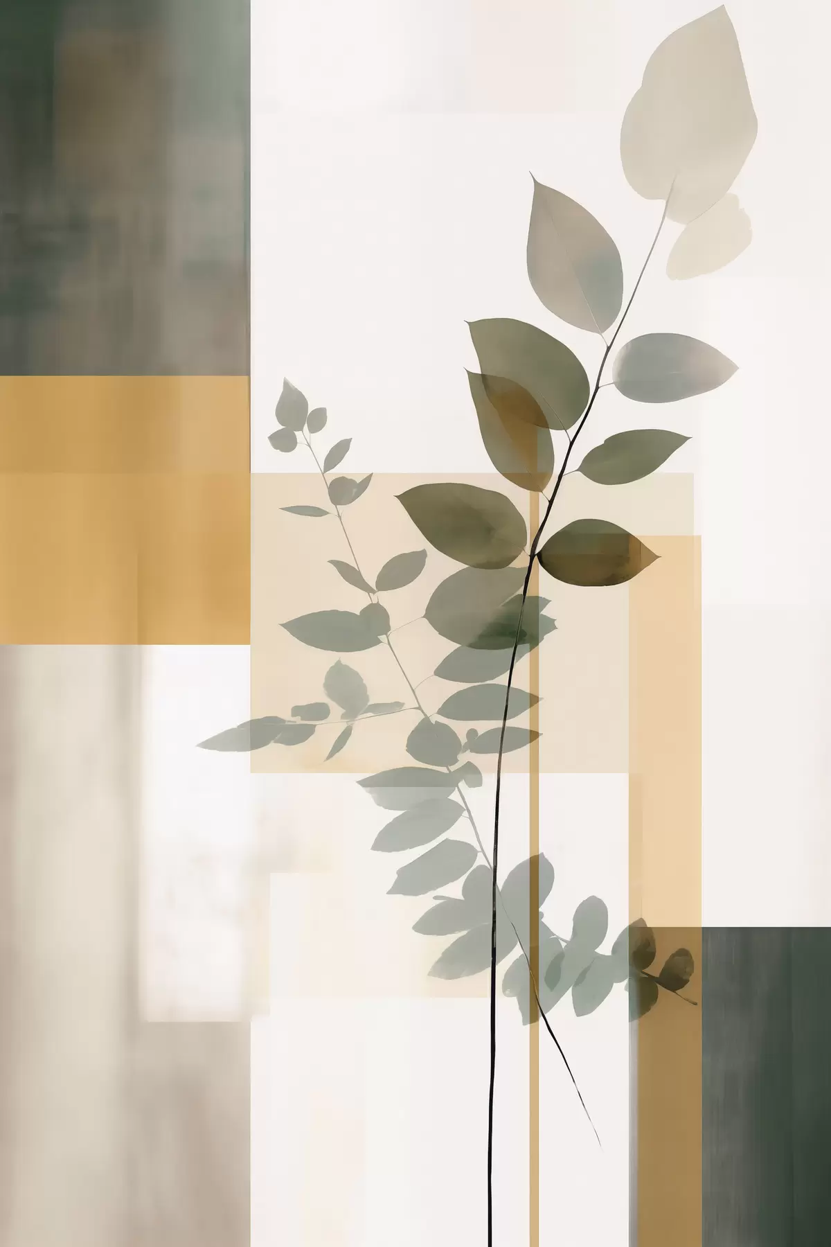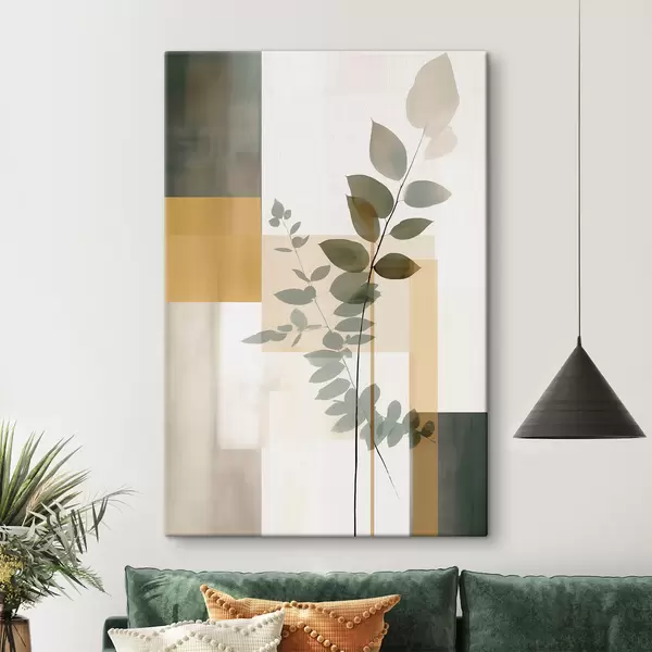 Schilderij Geometrische abstractie met takken en bladeren Art. s48171
