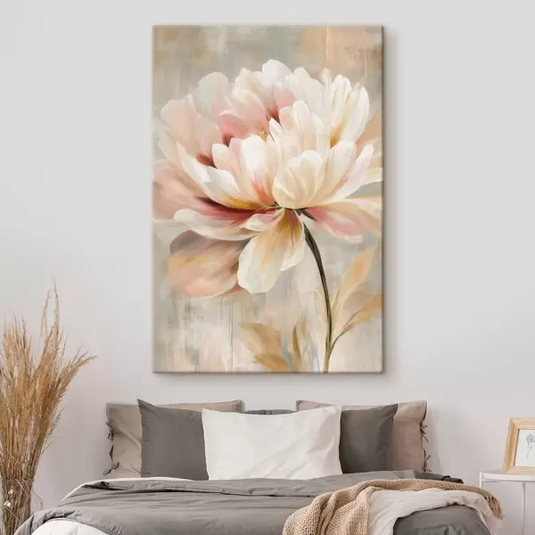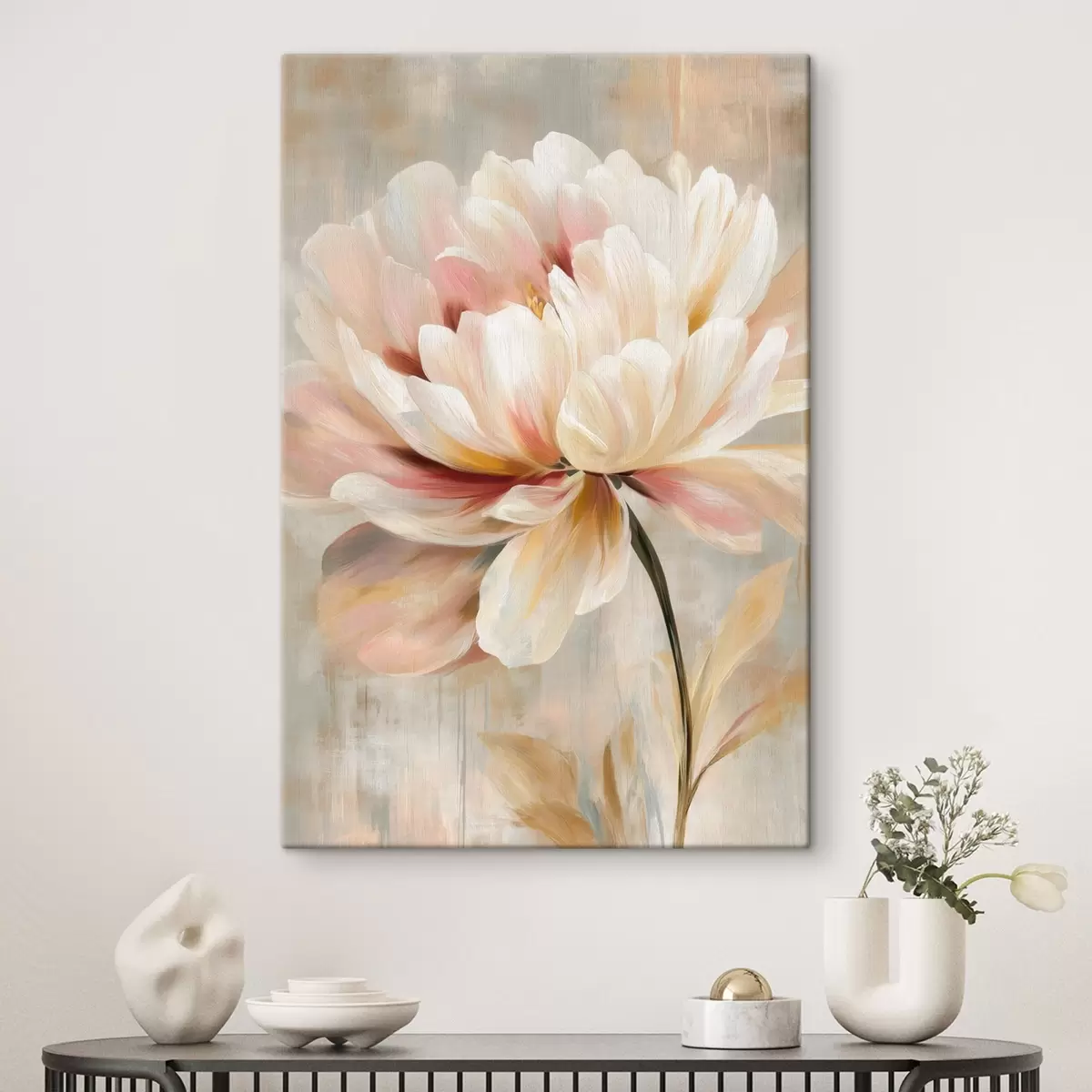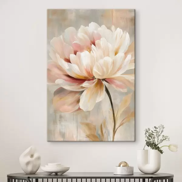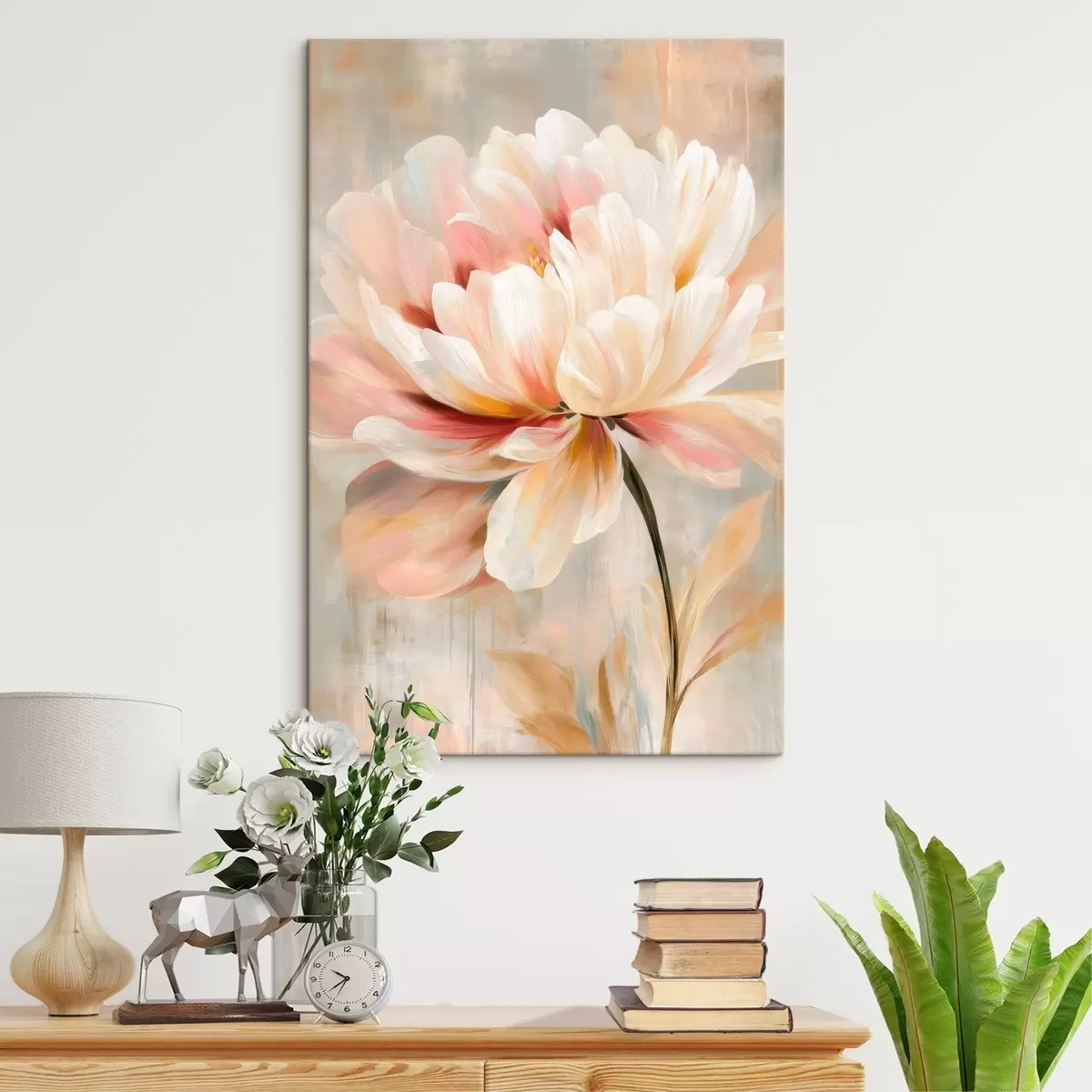 Schilderij Een delicate pioenroos in pasteltinten, geschilderd in olieverfstijl Art. s48183