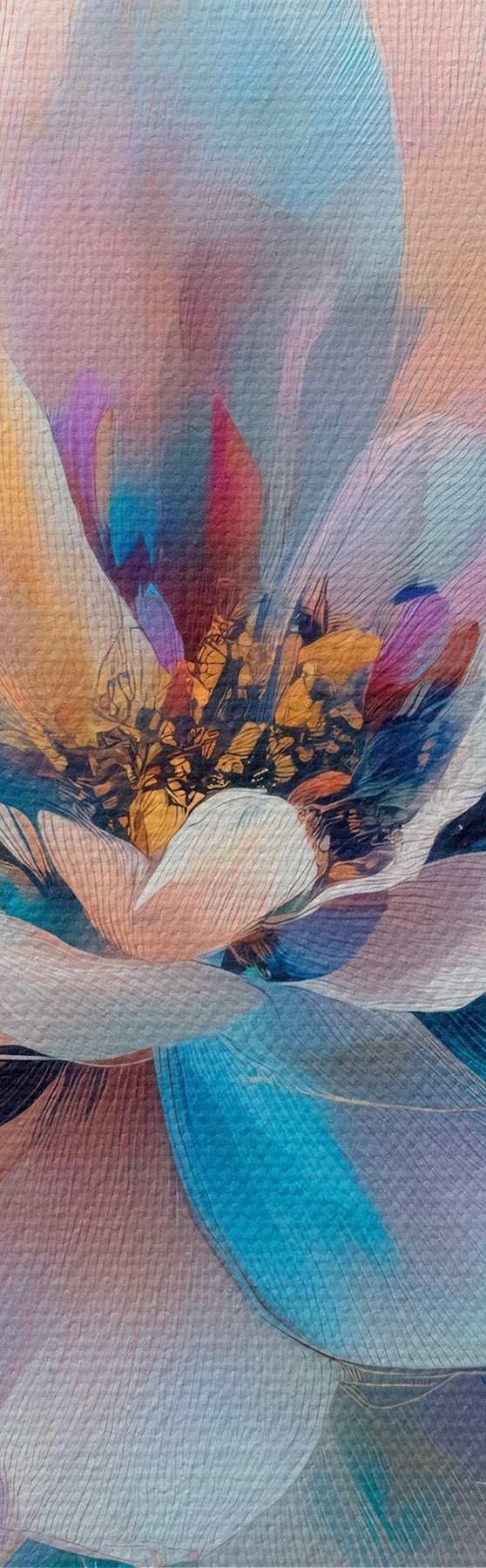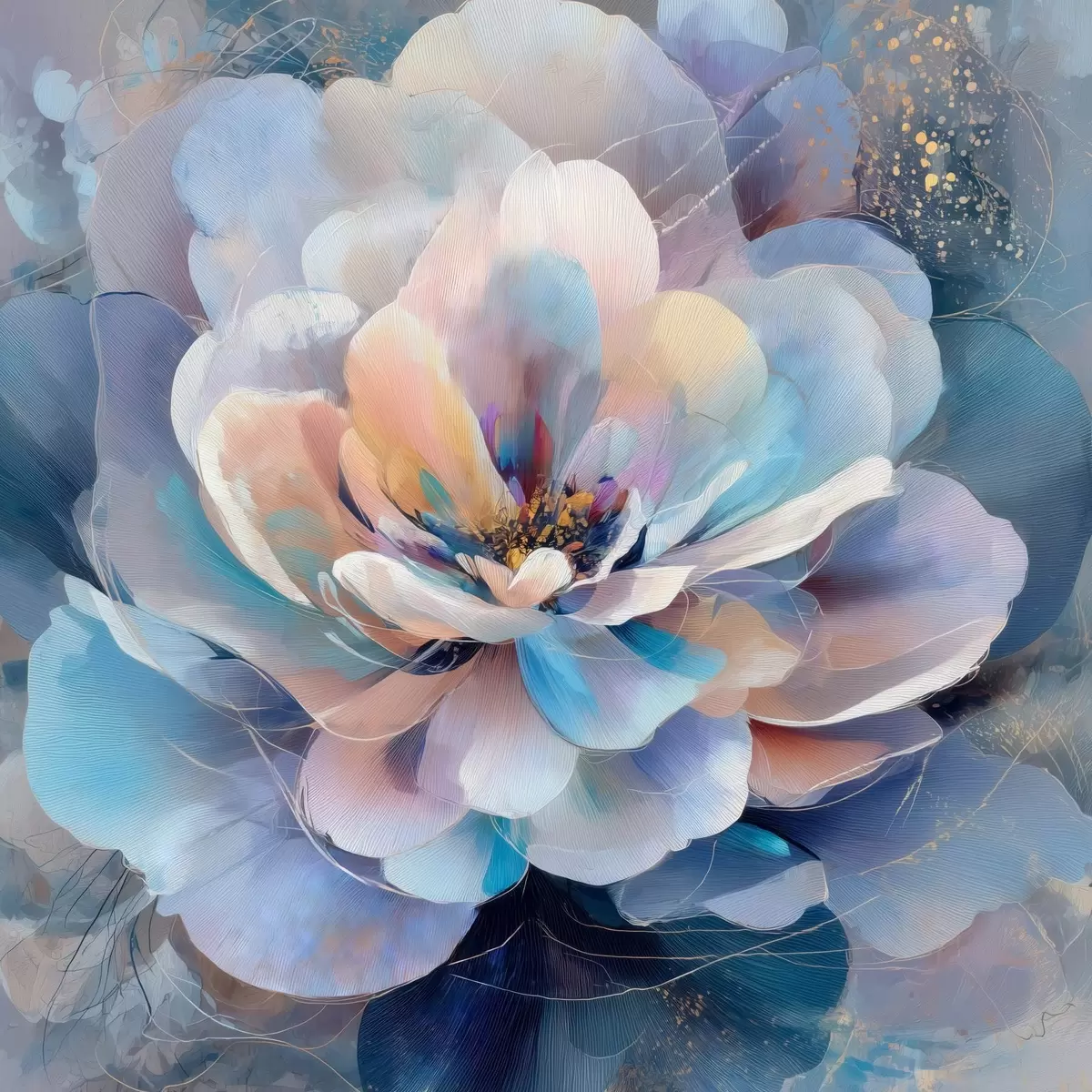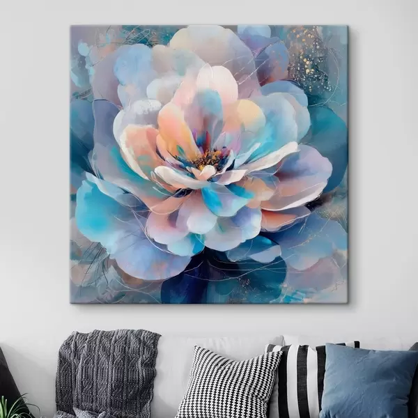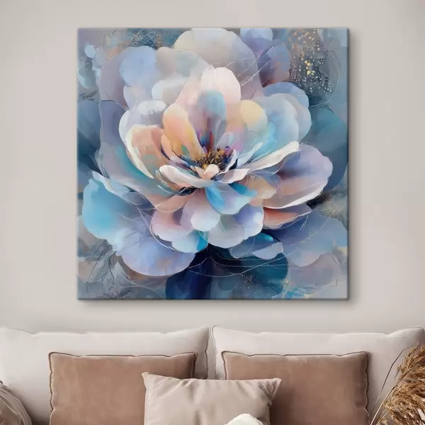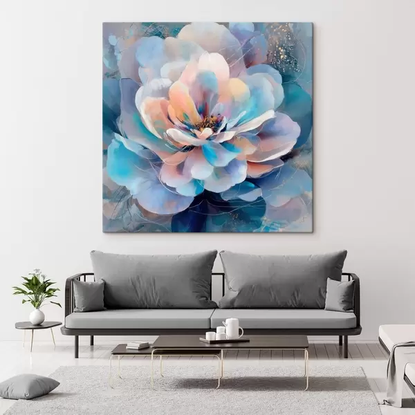 Schilderij Abstracte bloem in roze en blauwe tinten, uitgevoerd in een eigentijdse schilderstijl Art. s48185