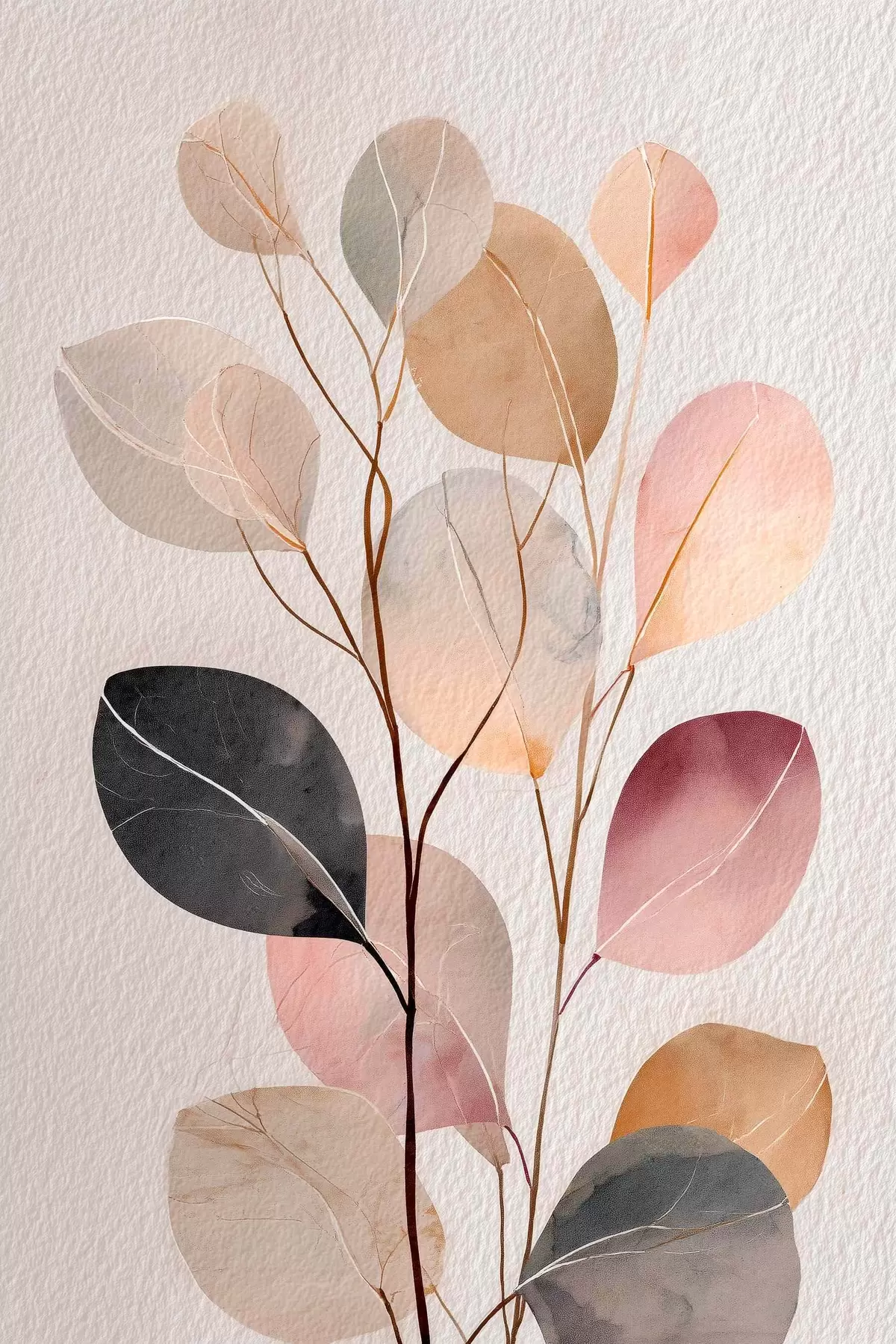 Schilderij Abstracte tak in beige- en koraaltinten in aquarelstijl Art. s48188