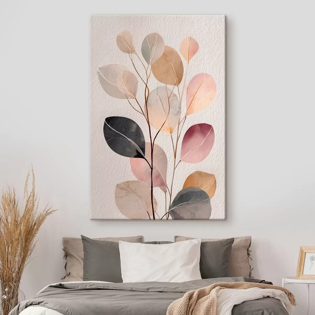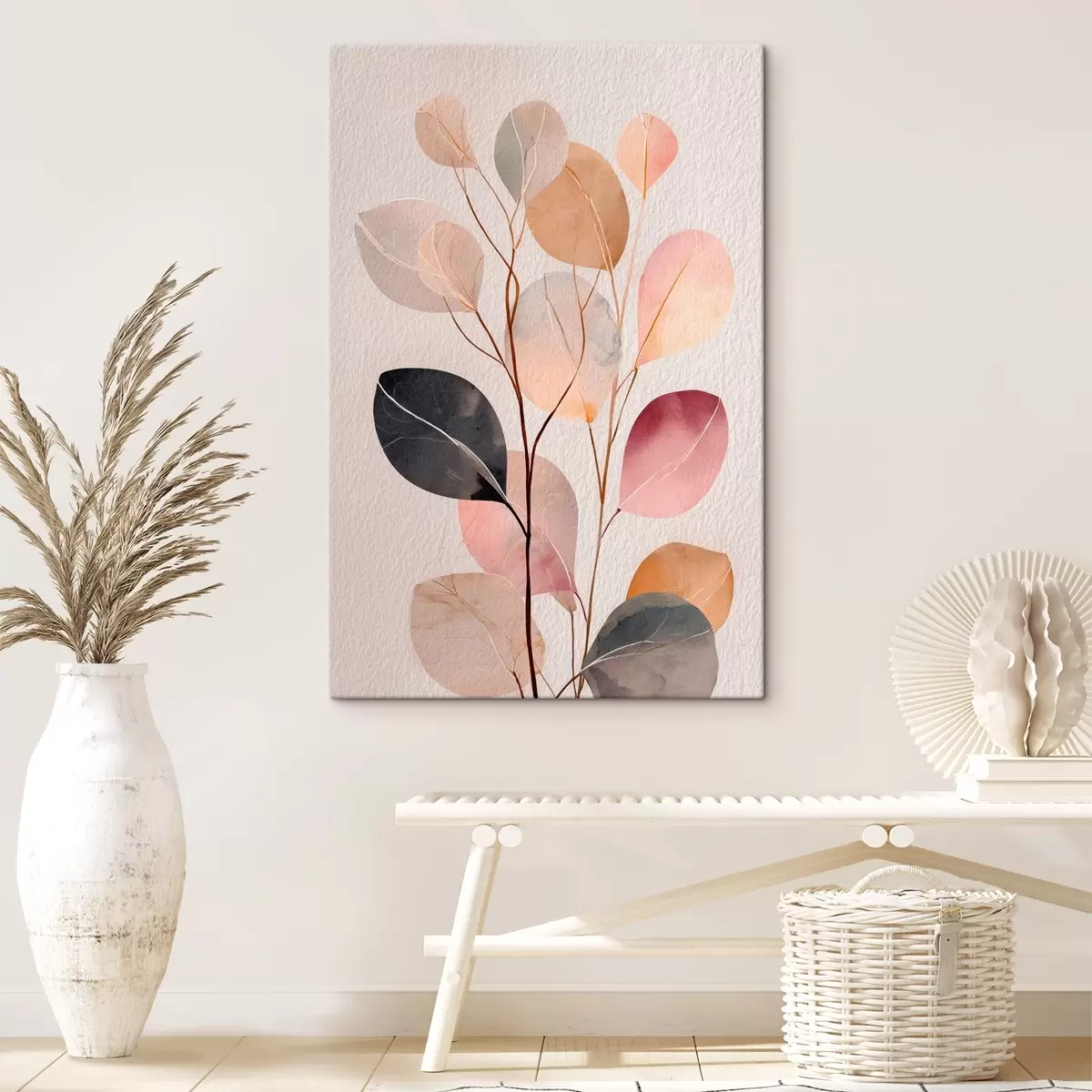 Schilderijen Abstracte tak in beige- en koraaltinten in aquarelstijl s48188