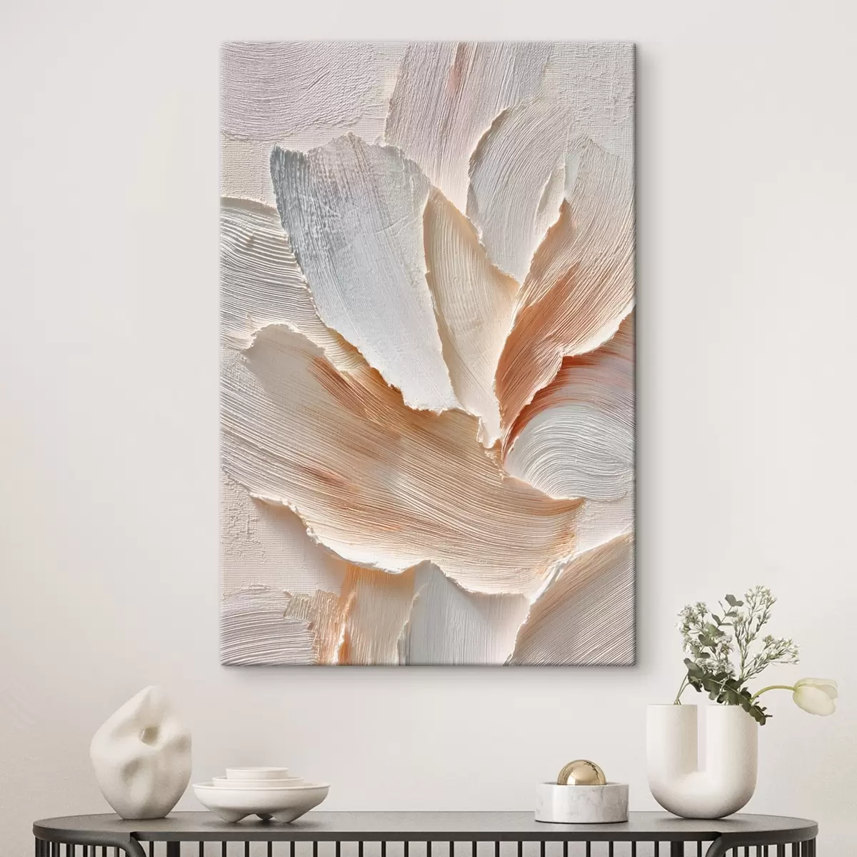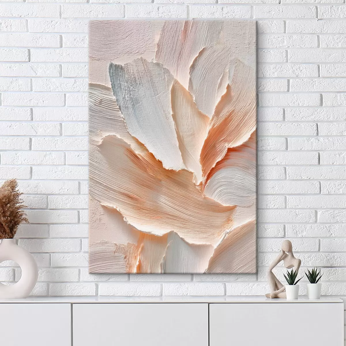 Schilderij Abstracte compositie in lichte tinten met een uitgesproken penseelstreektextuur Art. s48199