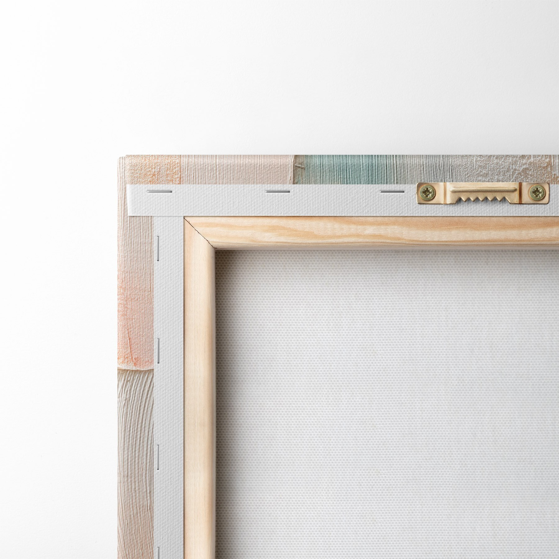Om het doek op te spannen op spielatten zonder de afbeelding te beschadigen, gebruiken we gespiegeld beeld.