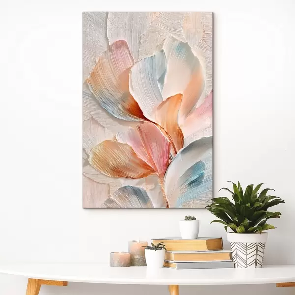 Schilderijen Gestileerde compositie met een effect van dikke penseelstreken op een lichte achtergrond s48203