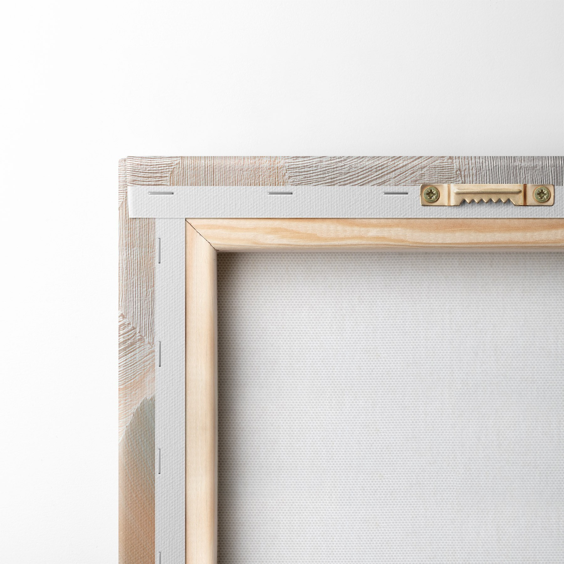 Om het doek op te spannen op spielatten zonder de afbeelding te beschadigen, gebruiken we gespiegeld beeld.