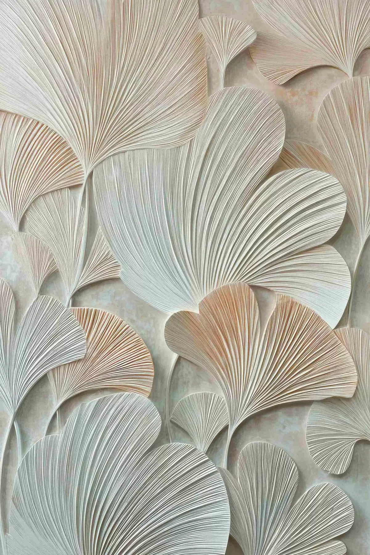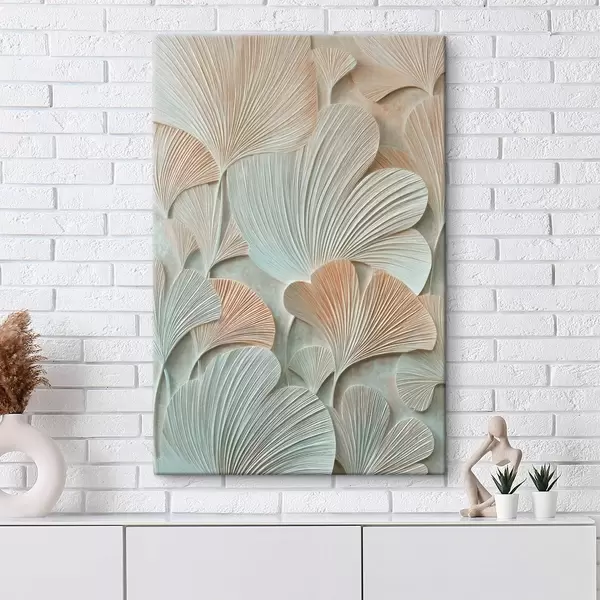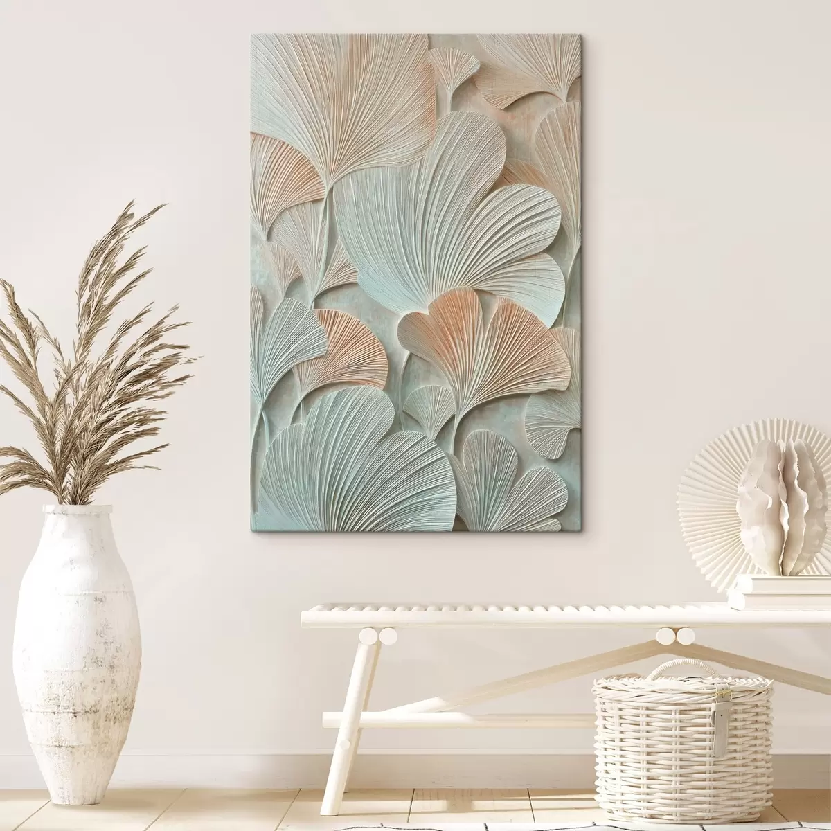 Schilderij Gestileerde ginkgo biloba-bladeren met een volumineuze textuur in pasteltinten Art. s48209