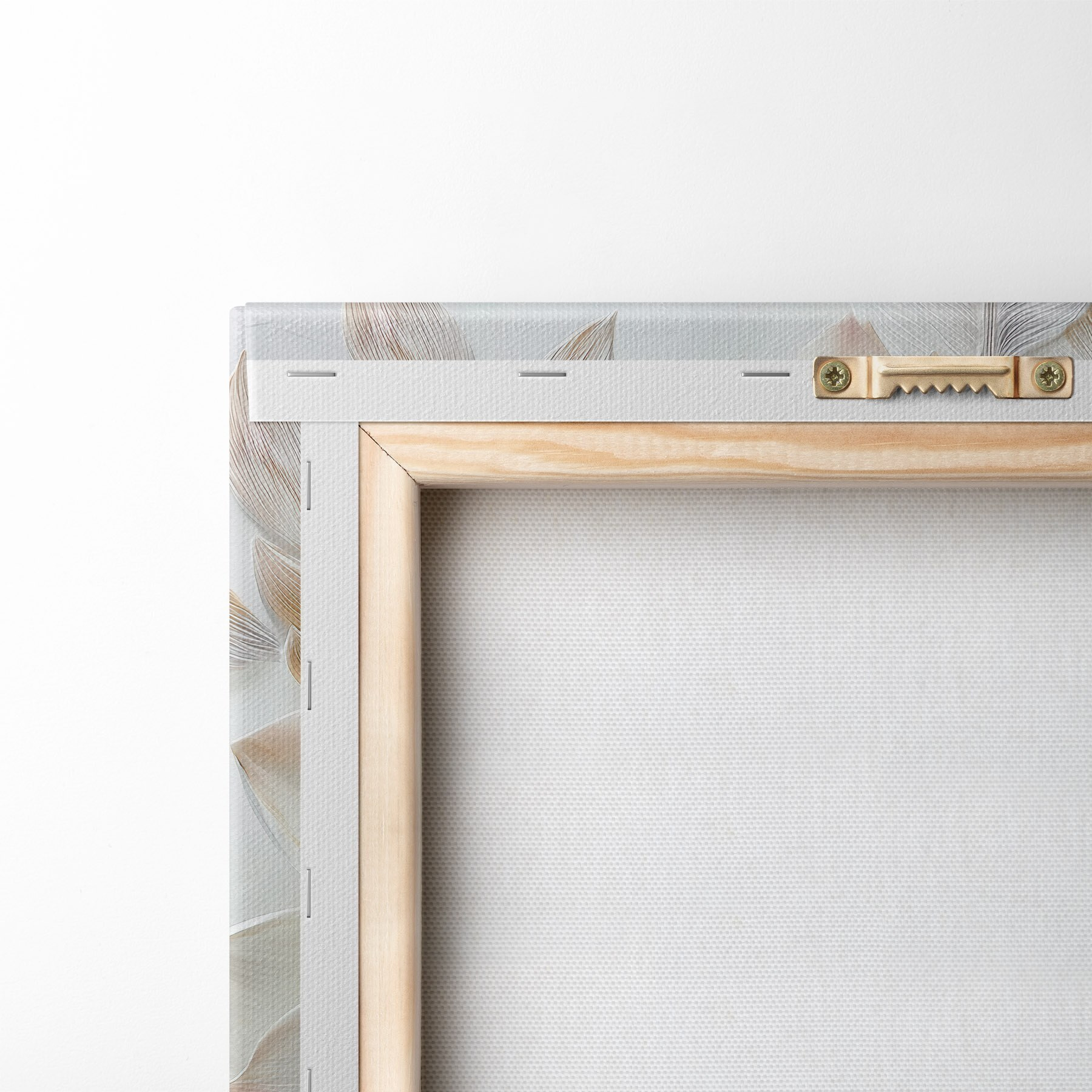Om het doek op te spannen op spielatten zonder de afbeelding te beschadigen, gebruiken we gespiegeld beeld.
