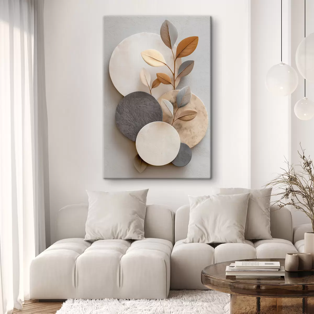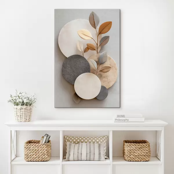 Schilderij Cirkels en takken van bladeren Art. s48223