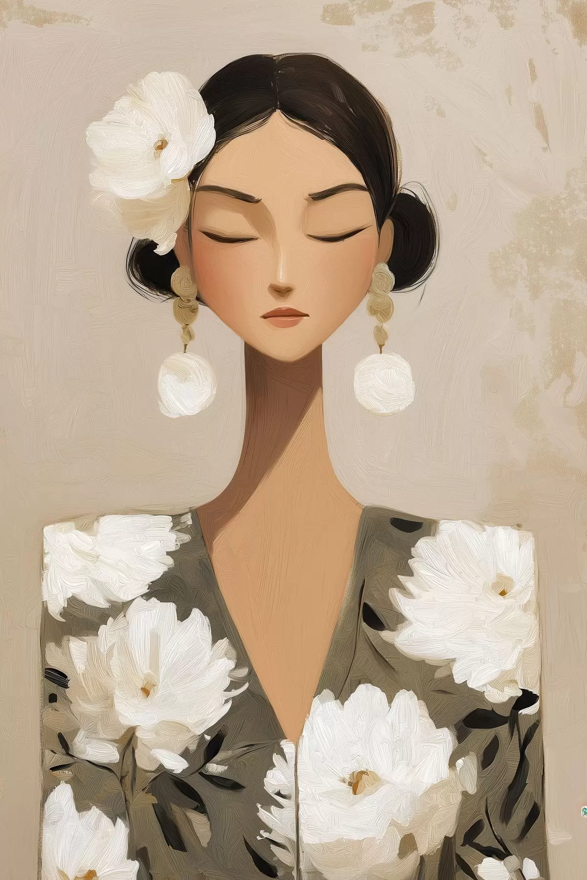 Schilderij Meisje met bloemen in haar haar Art. s48233