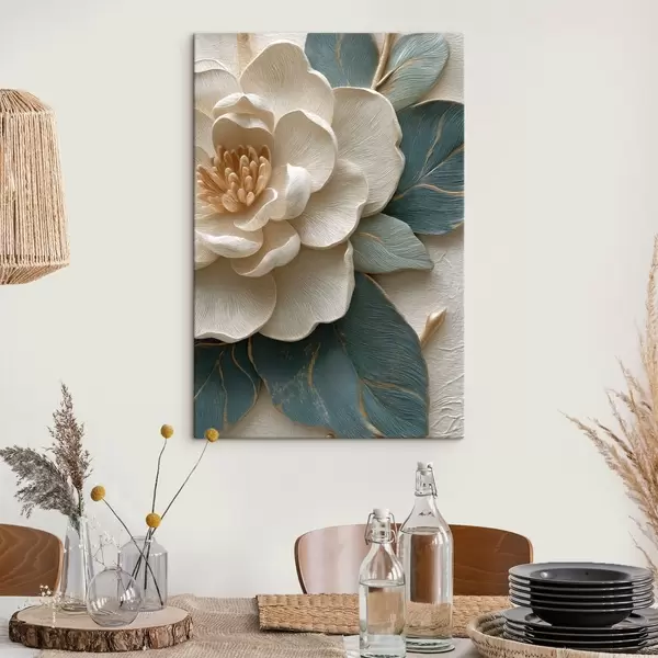Er zijn drie soorten materiaal te bestellen: Economic Canvas - een dicht en duurzaam materiaal voor digitaal printen, identiek aan schildersdoek, waterdicht oppervlak, realistische weergave van details, materiaal met gemiddelde korrel. Premium Canvas - de textuur lijkt op die van schildersdoek (verweven kleine draden). Zachte, gedetailleerde reproductie van de afbeelding op een mat oppervlak. Eco-Premium - hoogwaardige 100% katoenen stof. Dankzij de natuurlijke katoenvezels is het materiaal duurzaam en slijtvast. Uitstekende kleurweergave en detail.