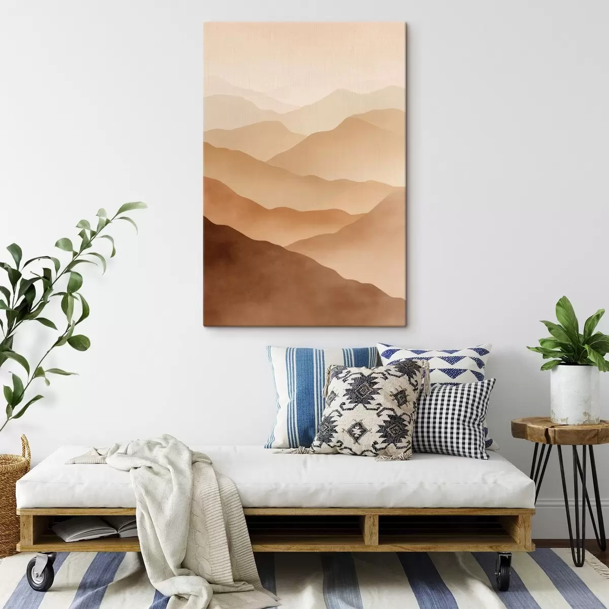 Er zijn drie soorten materiaal te bestellen: Economic Canvas - een dicht en duurzaam materiaal voor digitaal printen, identiek aan schildersdoek, waterdicht oppervlak, realistische weergave van details, materiaal met gemiddelde korrel. Premium Canvas - de textuur lijkt op die van schildersdoek (verweven kleine draden). Zachte, gedetailleerde reproductie van de afbeelding op een mat oppervlak. Eco-Premium - hoogwaardige 100% katoenen stof. Dankzij de natuurlijke katoenvezels is het materiaal duurzaam en slijtvast. Uitstekende kleurweergave en detail.